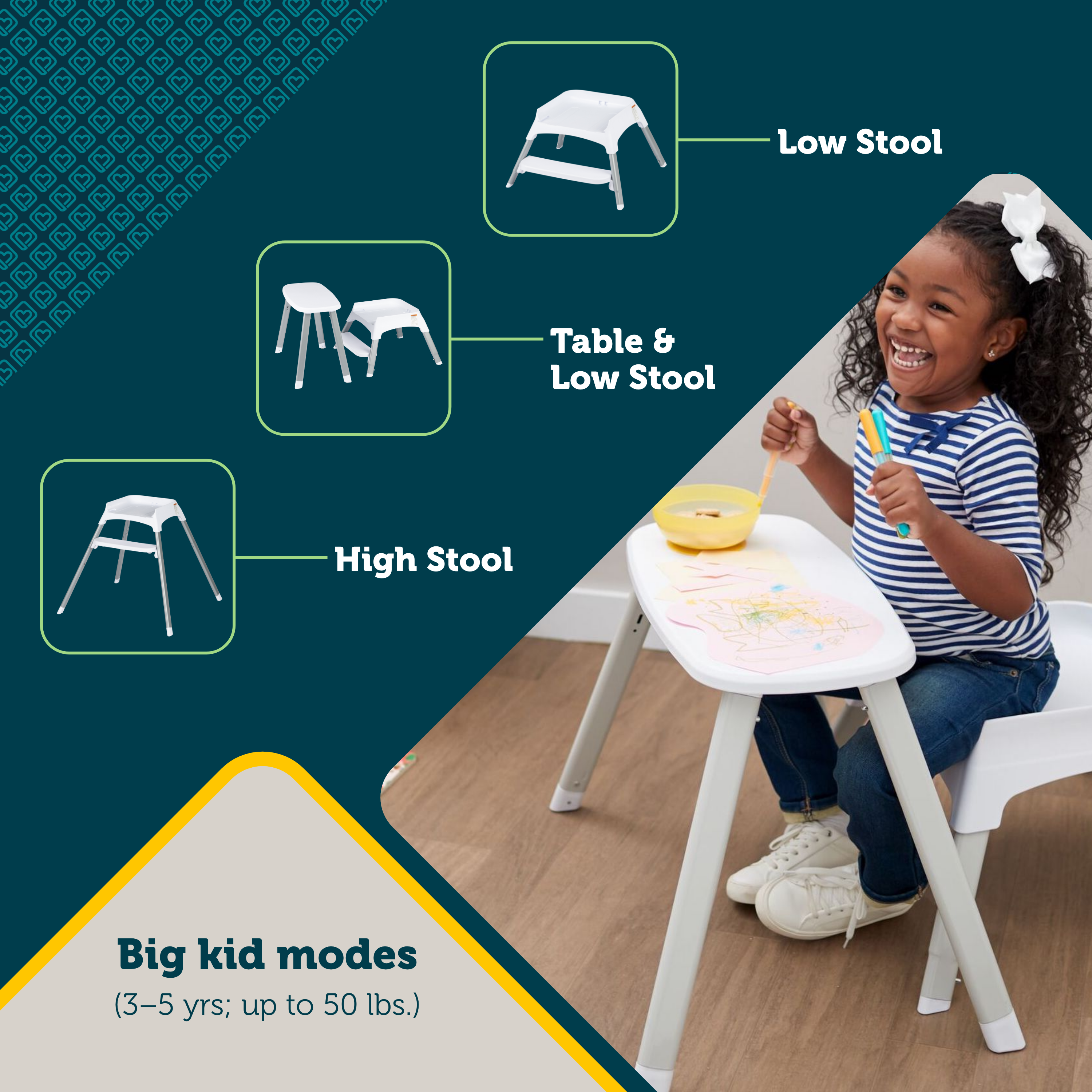 Before you know it, your baby will be ready to join you at the dinner table. Welcome your child to the exciting new world of smearable foods with the Grow and Go 3-in-1 High Chair. It easily rolls up to the kitchen table and grows with your child from baby to toddler and beyond. It’s a great place for your little one to sit, from their first spoon-fed meal to their first spaghetti fling across the room.