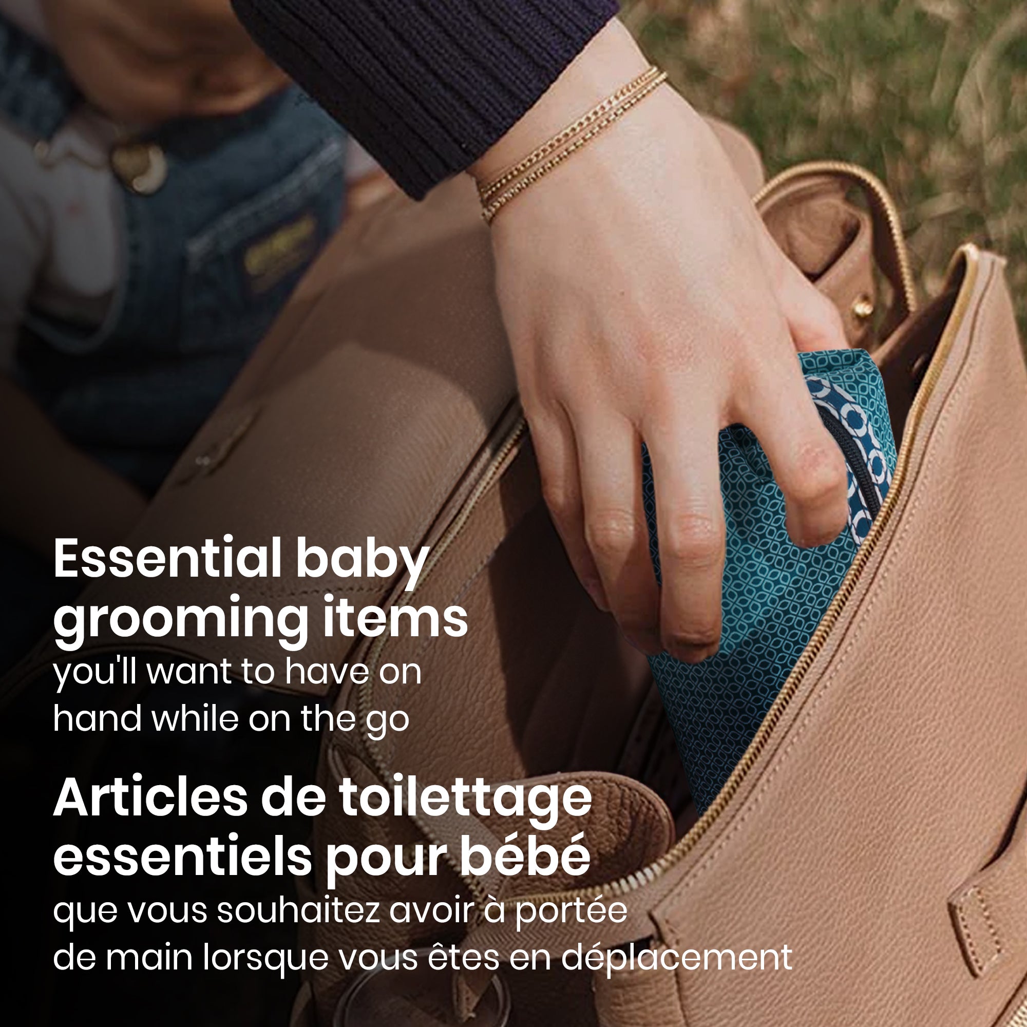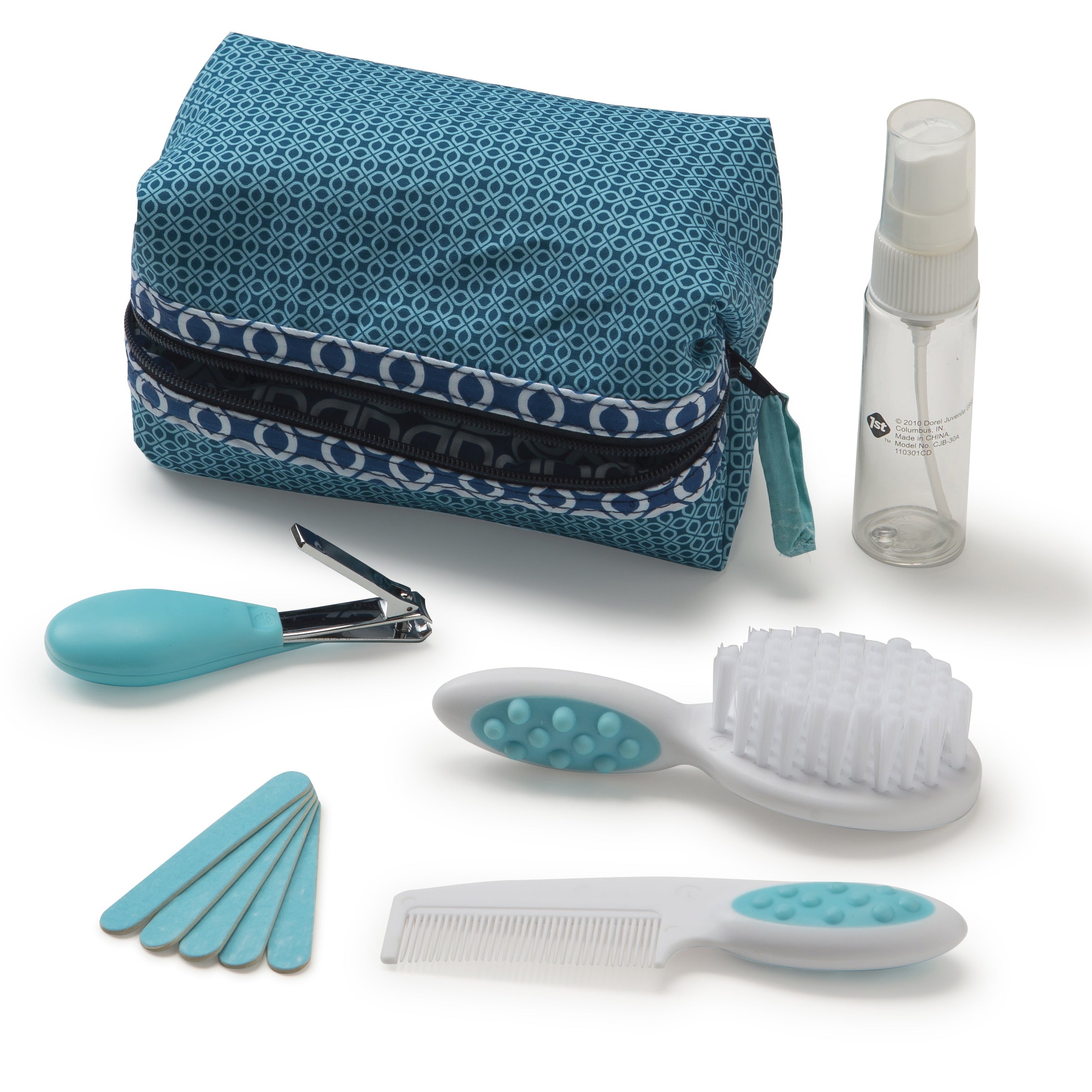The 1st Grooming Kit by Safety 1st contains the essential baby grooming items you'll want to have on hand while on the go. This kit gives you a stylish and easy way to keep these items organized with a zippered storage case to keep everything safely inside. The carrier also easily reverses from a standard pouch to a pencil style case. With a soft-grip brush and comb for children, fold-up nail clippers, and more; you'll be prepared wherever the road takes you.