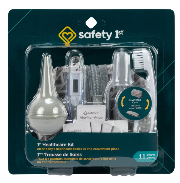 The 1st Healthcare Kit by Safety 1st is the perfect starter set for baby’s first healthcare essentials. This convenient kit includes everything you need to care for your little one while on the go. The zippered case keeps all of baby’s healthcare items securely stored and easily accessible. It reverses from a standard pouch to a compact pencil-style case for easy portability. Featuring a 3-in-1 thermometer, newborn nasal aspirator, medicine dropper, and other essential healthcare tools, this kit ensures you're always prepared, wherever the road takes you.
