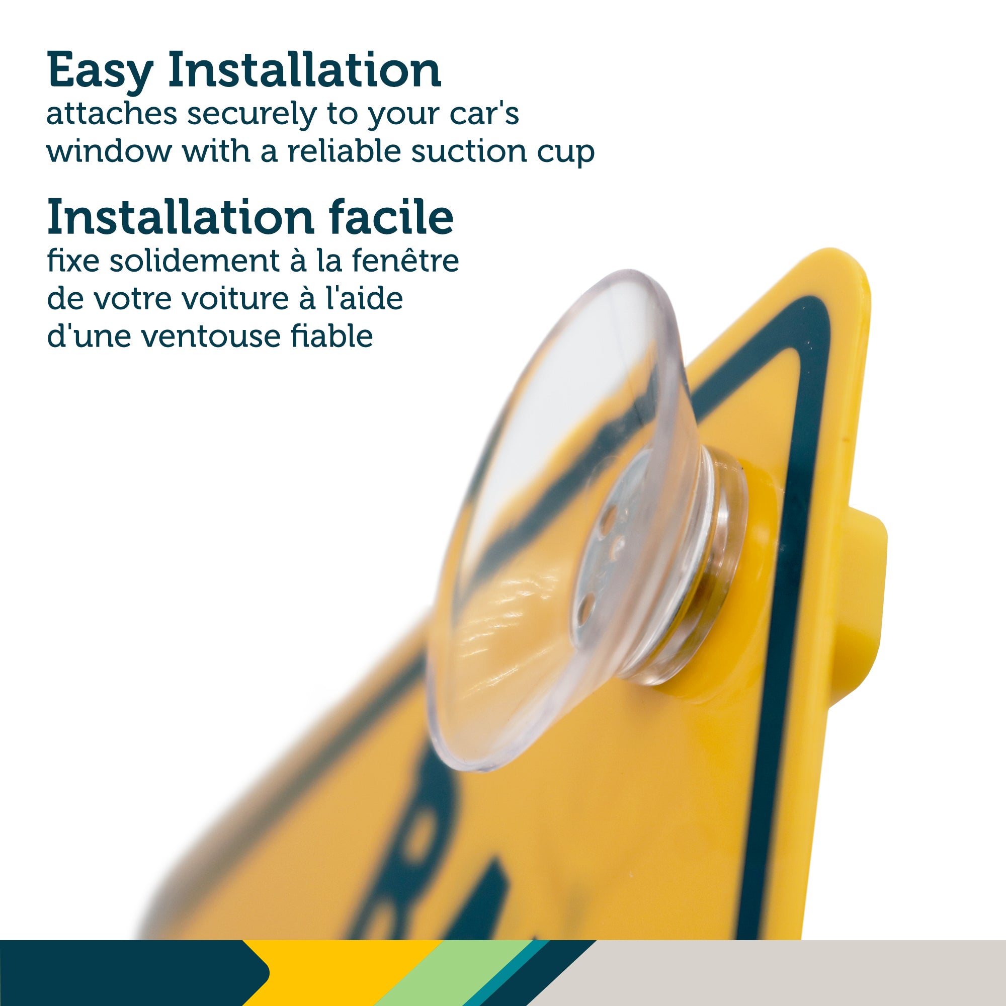 Designed for maximum visibility, the bright yellow sign stands out day or night, ensuring it’s easily seen from a distance. Attaching the sign is hassle-free with a secure suction cup that sticks to any car window and removes without leaving marks.