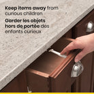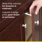 Your little one is curious and eager to explore to world. The Safety 1st Cabinet and Drawer Latches help babyproof your home and are sturdy enough for even the cleverest of toddlers. Each latch features a wide easy-grip surface, giving you the quick access you need to whatever’s inside. Our latches install easily inside your cabinets or drawers, providing the perfect coverage while remaining out of sight from both kids and visitors.