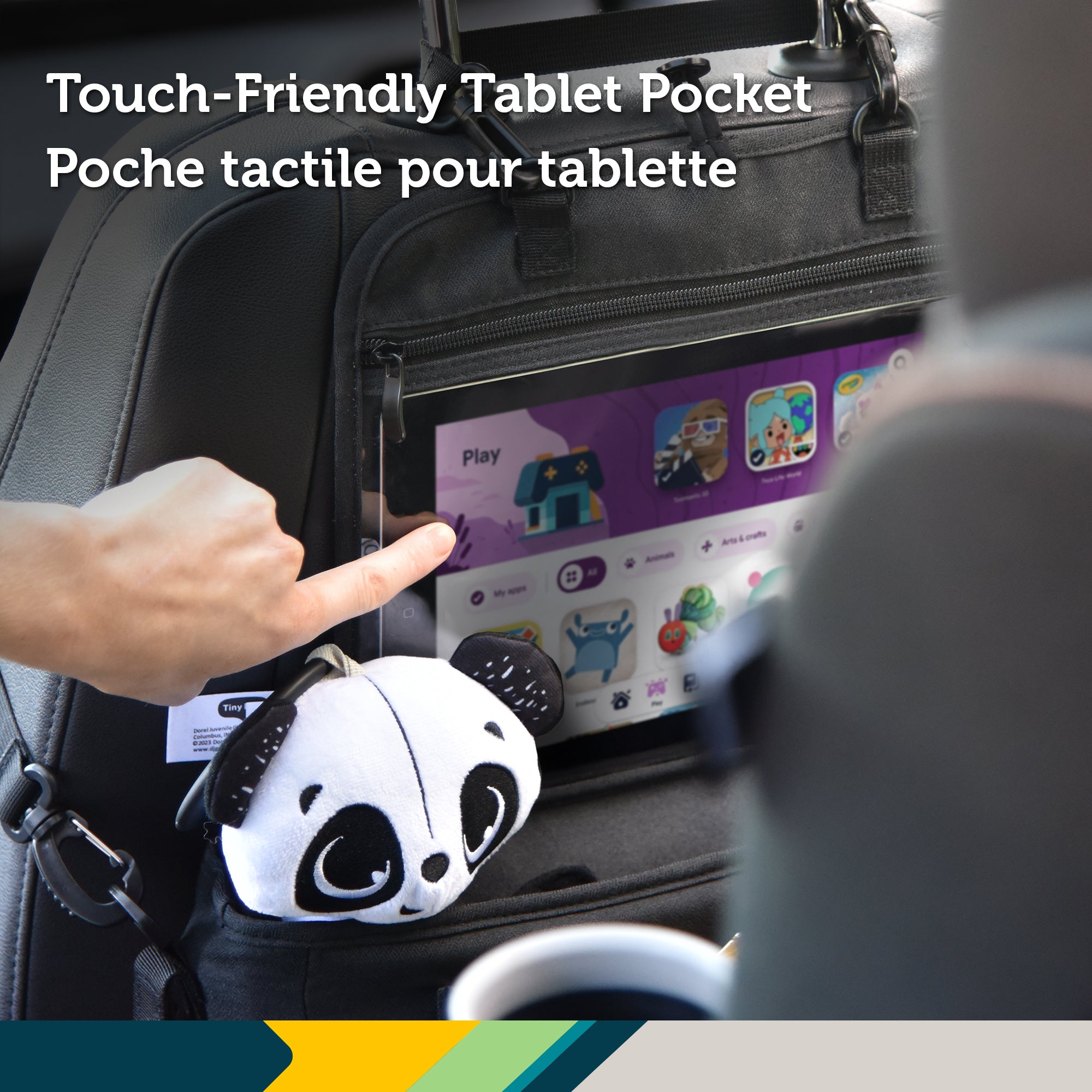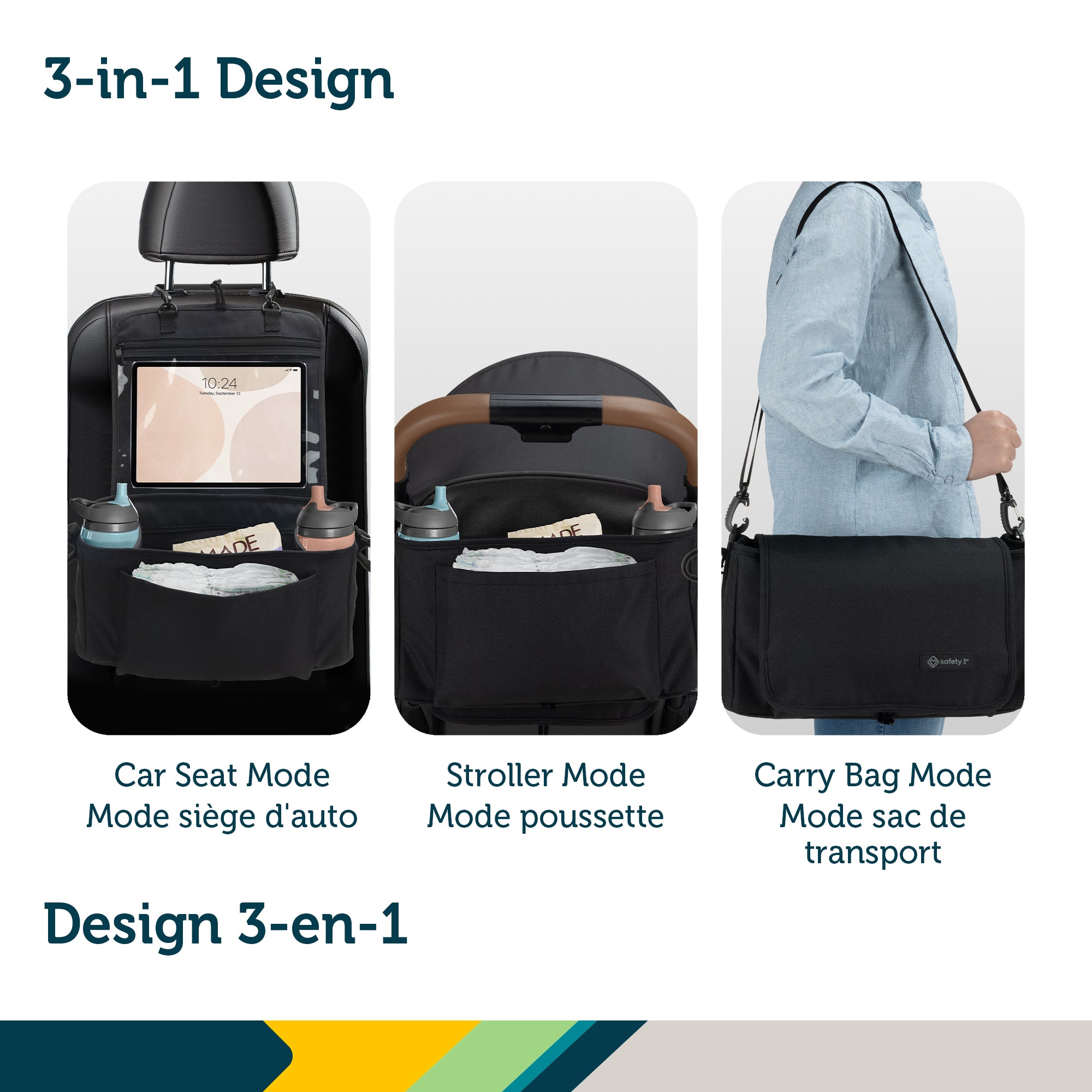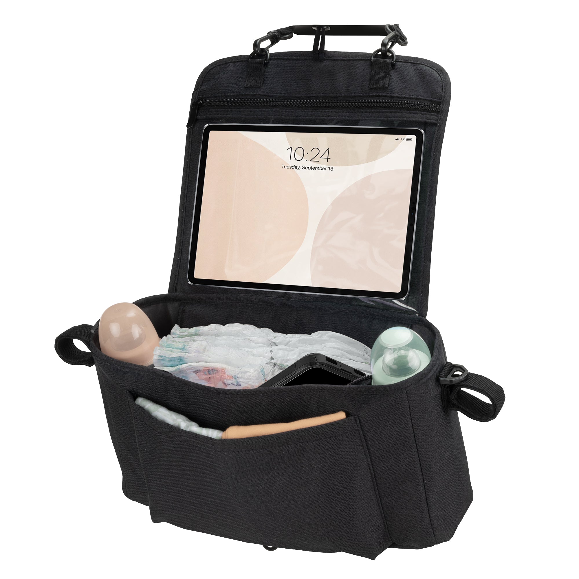 Keep all your travel essentials organized and within reach with the Safety 1st Car & Stroller Organizer, designed for use in car seat mode, stroller mode, or as a convenient carry bag. Featuring a touch-friendly tablet pocket, your child can enjoy shows, games, or videos without removing the device, making every ride or stroll more enjoyable.