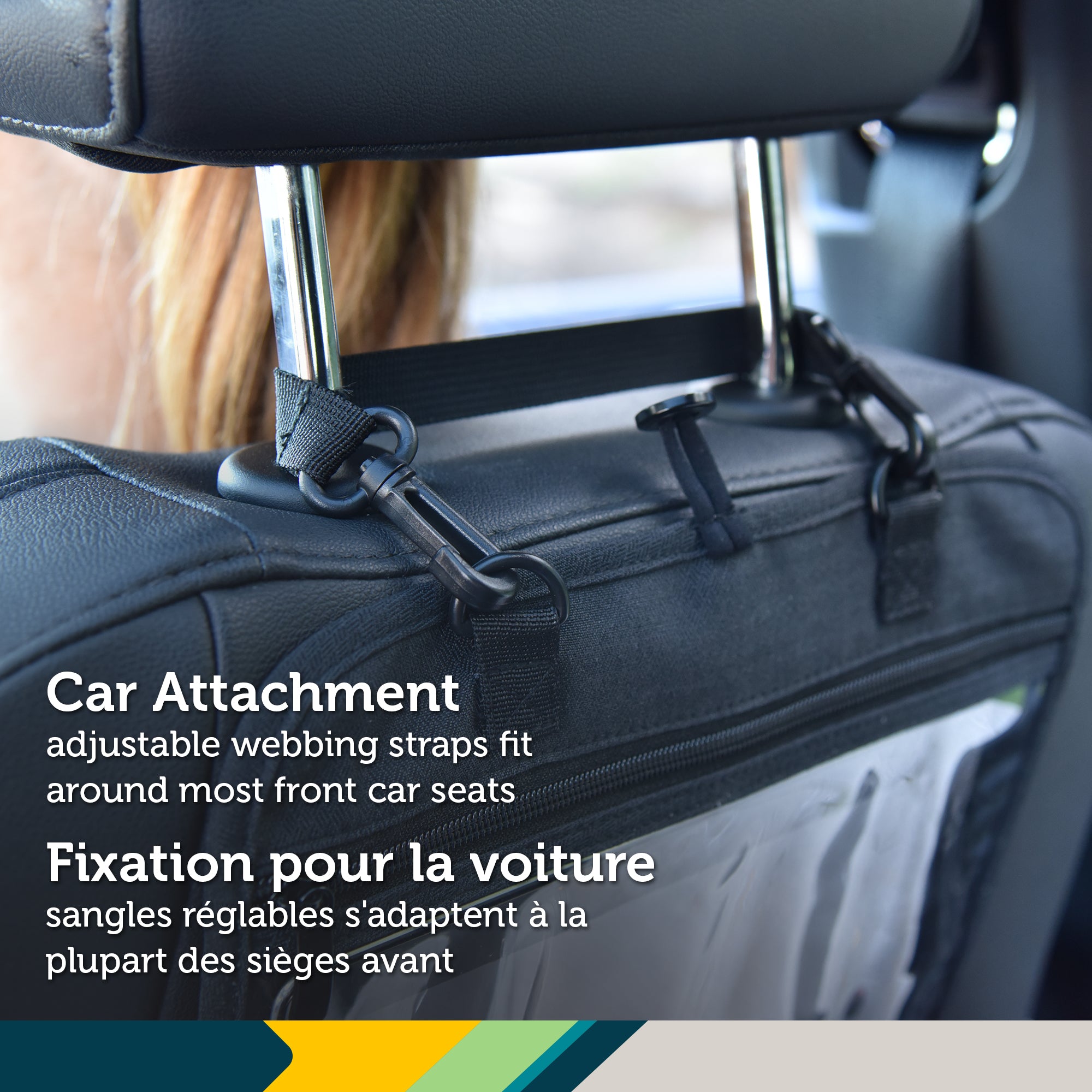 With ample storage space, two large cup holders, and a zippered privacy pocket, this organizer keeps snacks, drinks, toys, and valuables neatly stored and easy to access. Adjustable webbing straps secure the organizer around most front car seats, while durable Velcro attachments fit snugly on stroller handles - no tools required.