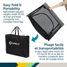 Transforming effortlessly into a spacious playard with 360° mesh visibility, your little one can play safely while you keep a close eye. The zippered access panel allows for quick in-and-out access, making transitions a breeze. Lightweight, portable, and compact when folded, the Dream & Go™ includes a travel bag, making it perfect for naptime, bedtime, or playtime—whether at home or on the go.