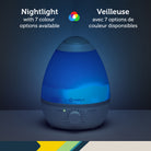 Designed for easy maintenance, the humidifier features an extra-wide opening that allows you to clean it with minimal effort. Its adjustable humidity knob puts you in control of moisture levels, ensuring a comfortable environment for your baby .Additionally, the built-in multi-colour nightlight provides a soft, soothing glow to create a calming atmosphere — with the flexibility to turn the light off if preferred.