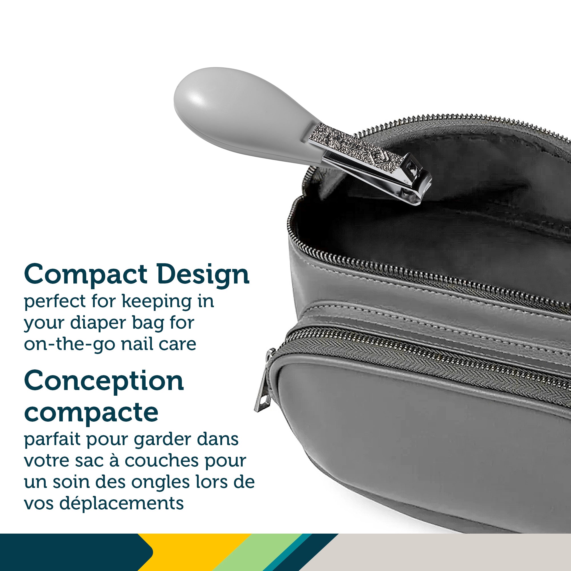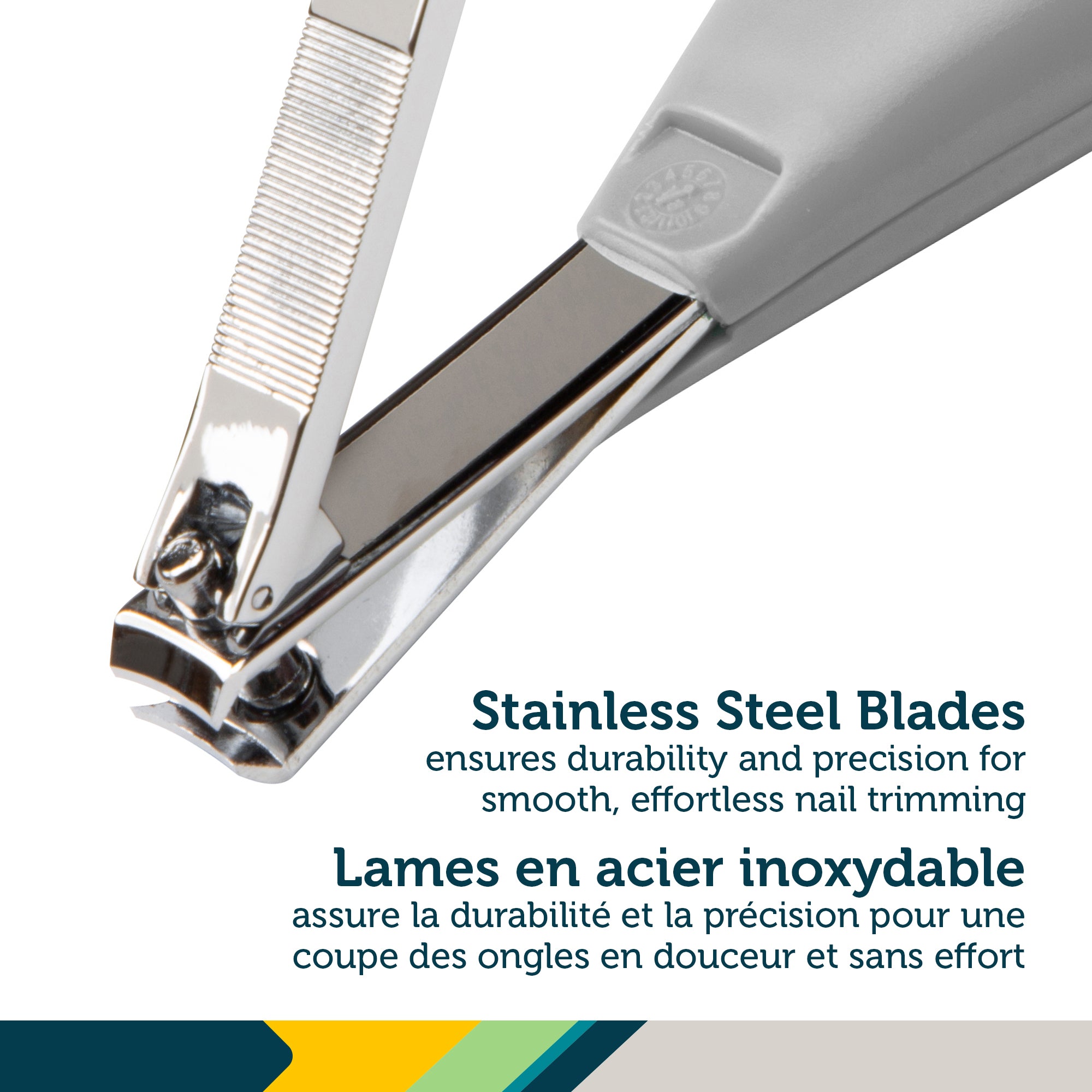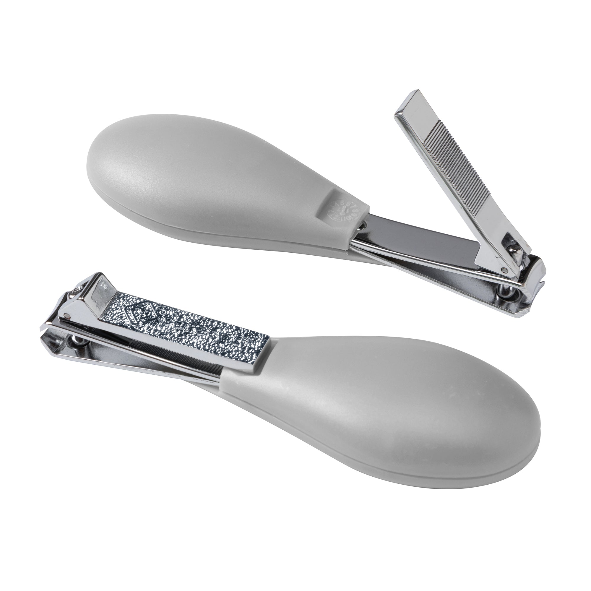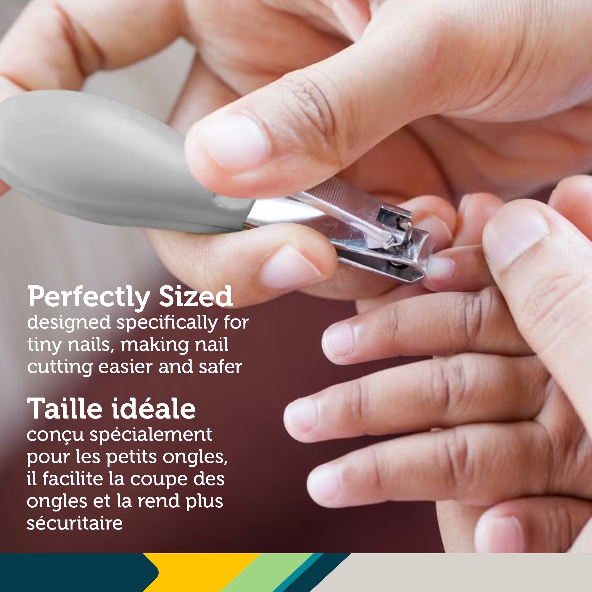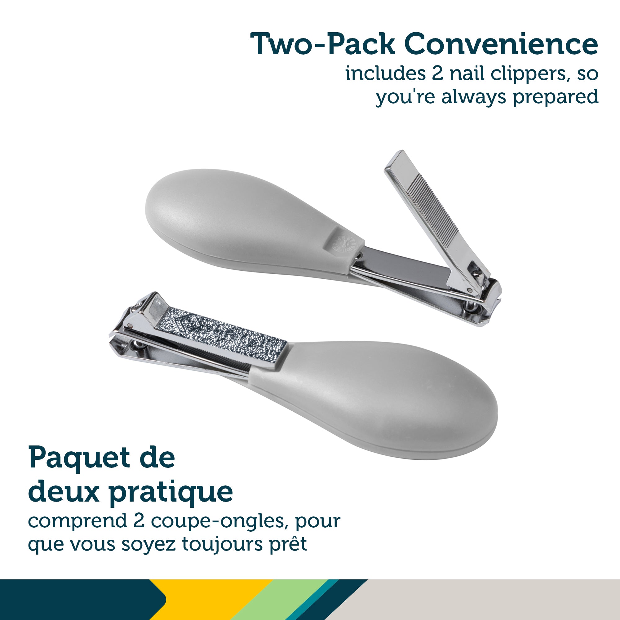 This 2-pack of Safety 1st Fold-Up Nail Clippers provides safe, precise grooming for your baby’s nails, wherever you need it. Designed with curved cutting edges for close, gentle trimming on little nails and a sure-grip extension for a firm hold to prevent mishaps, these clippers make nail care easy and safe. The rounded, comfortable handle fits securely in your hand, offering greater control to protect your child's delicate skin. Compact and foldable, they’re perfect for storage and travel—keep one in the nursery and one in the diaper bag for convenient grooming on the go.