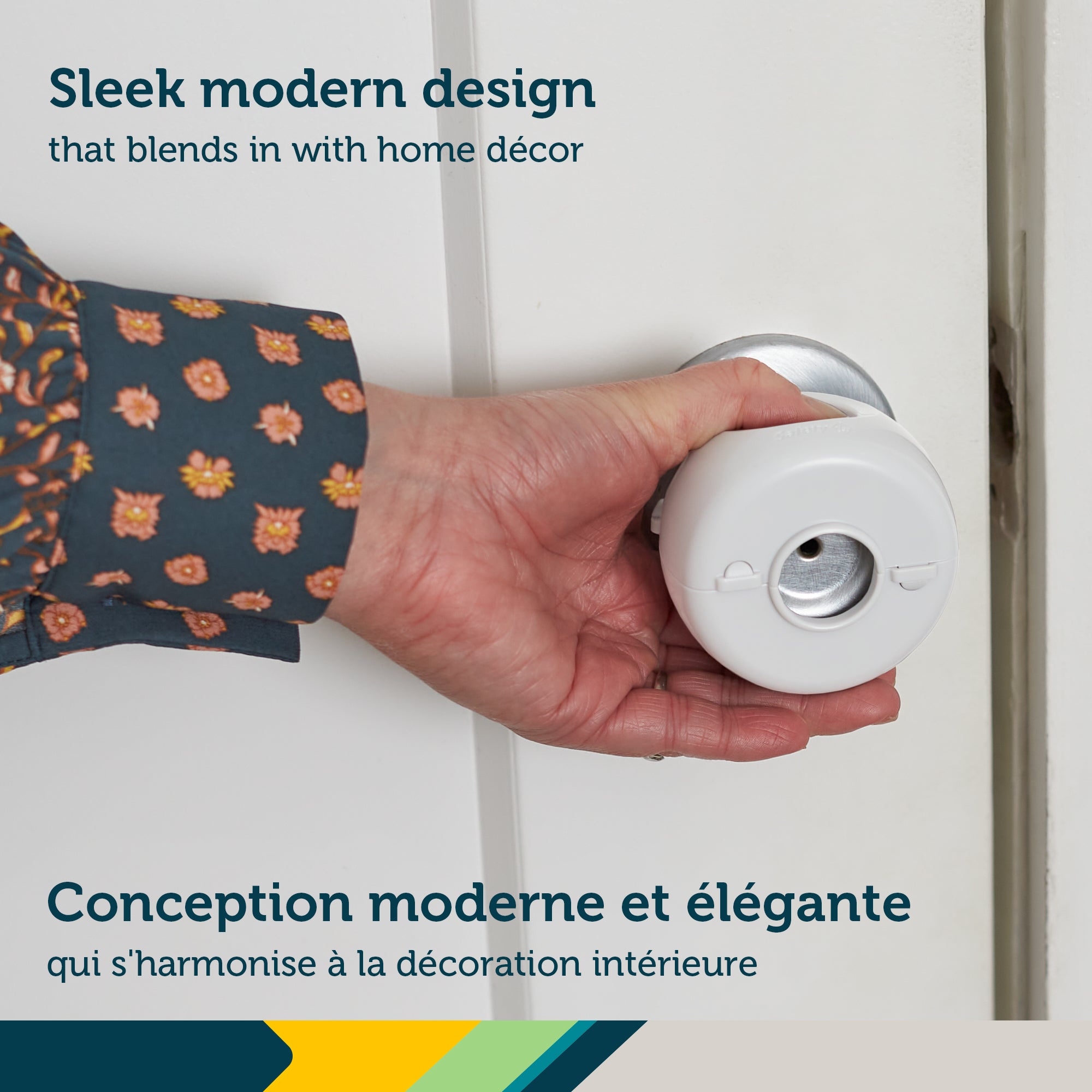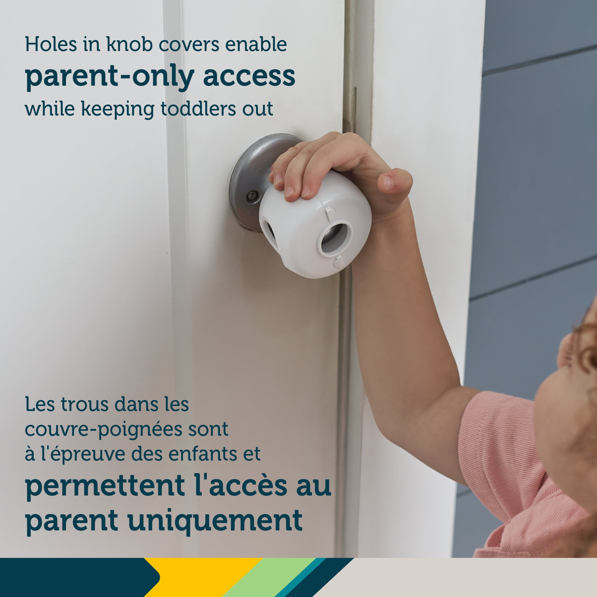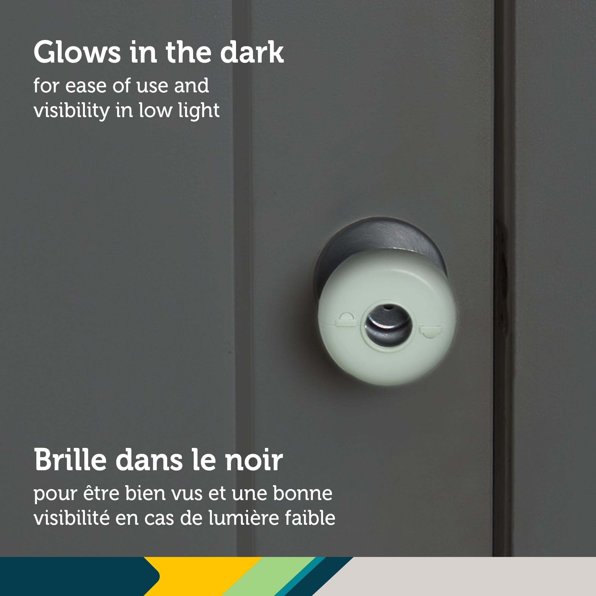 Keep your little explorer out of off-limits rooms with Grip 'n Twist Door Knob Covers. Designed to fit standard door knobs, these covers feature grip holes for easy parent access and blend seamlessly with your home décor. The covers emit a soft glow in the dark, making them easy to find and use at night. This pack of three provides childproofing for multiple doors, ensuring both safety and convenience.