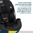 As your tiny baby grows into a big kid, messes are bound to happen, but we’ve made cleaning easy. The seat pad snaps off easily without removing the harness and is machine washable and dryer safe. Dual cup holders transport favorite drinks and snacks and are easily removable and dishwasher-safe. Getting kids in and out of the car is made easier with harness holders that keep harness straps out of the way.