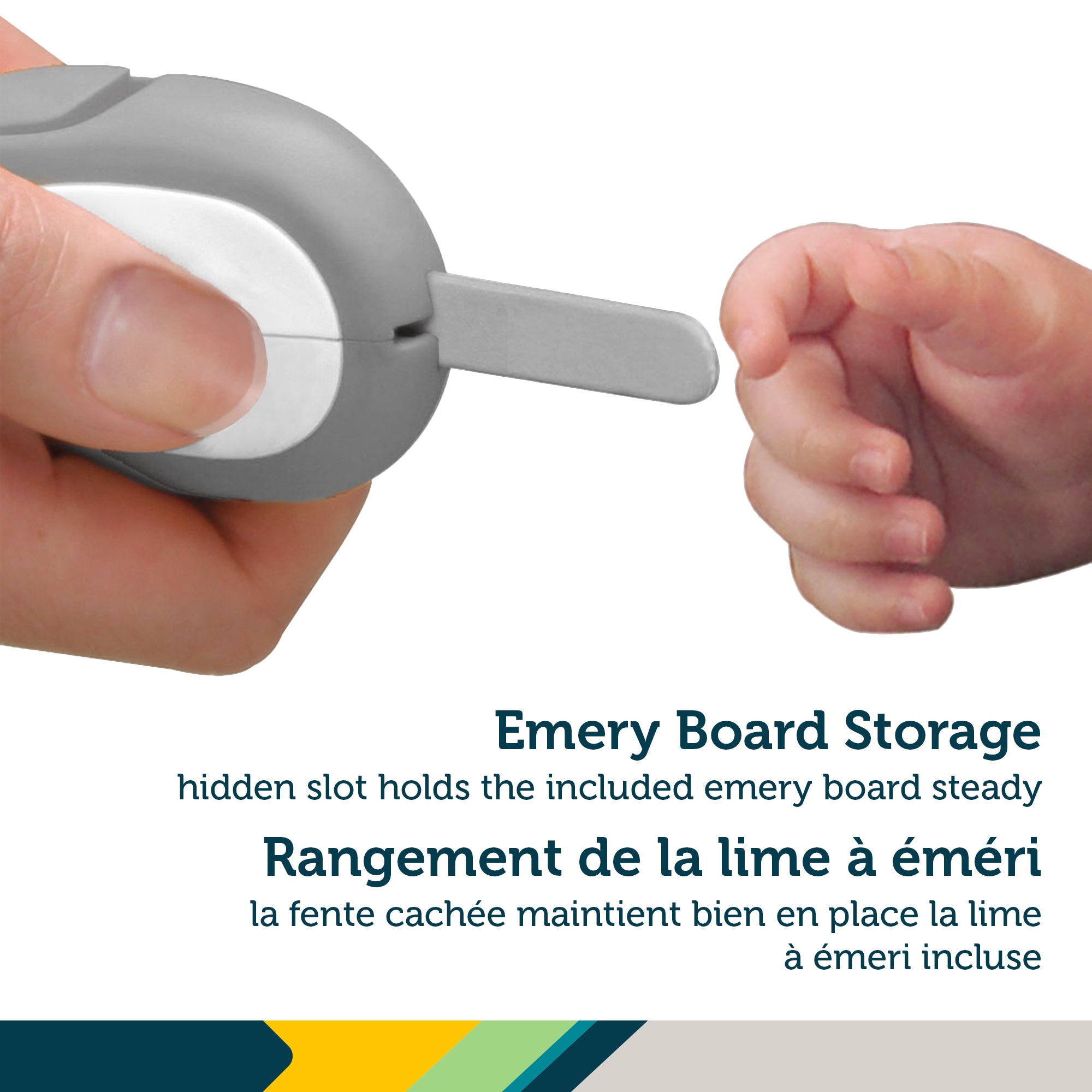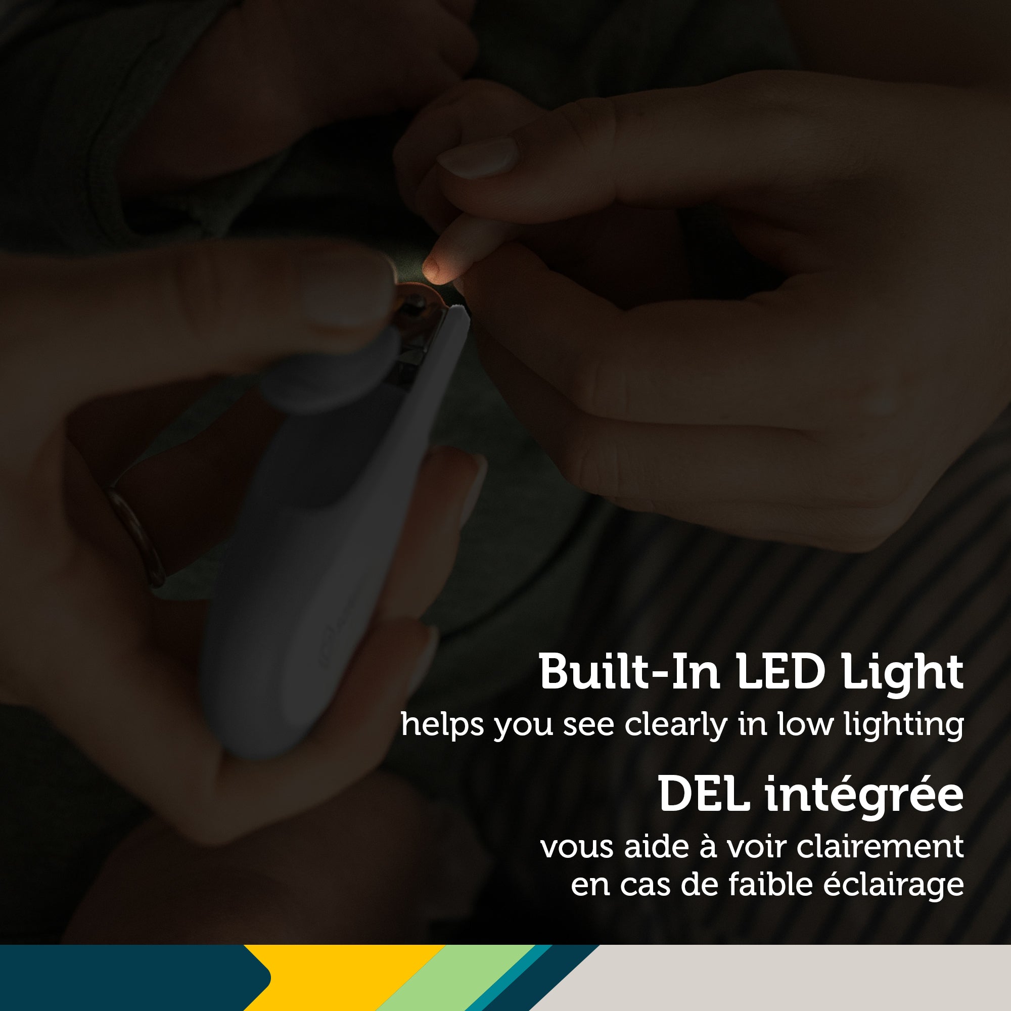 Safety 1st Light Up Nail Clippers make trimming tiny nails easier with a built-in LED light, helping you see clearly even while your baby sleeps. Designed for newborns to toddlers, these clippers ensure safe and gentle nail care as your child grows. The easy-grip design provides comfort and control, while the hidden emery board slot holds the included emery board steady, allowing you to smooth out rough edges with precision. Compact and diaper bag-friendly, they're perfect for on-the-go nail care.