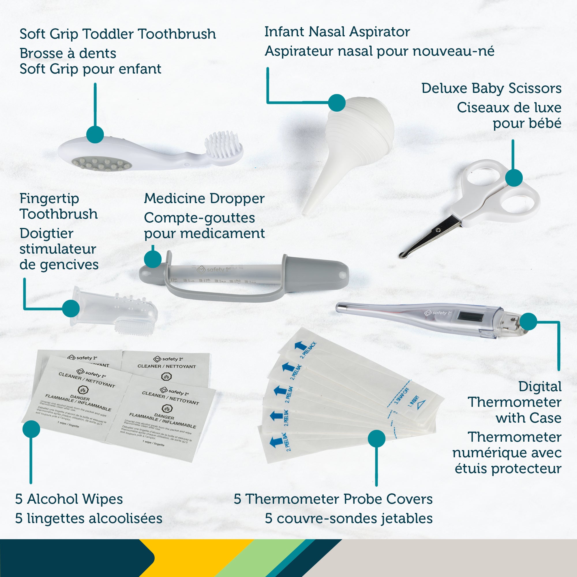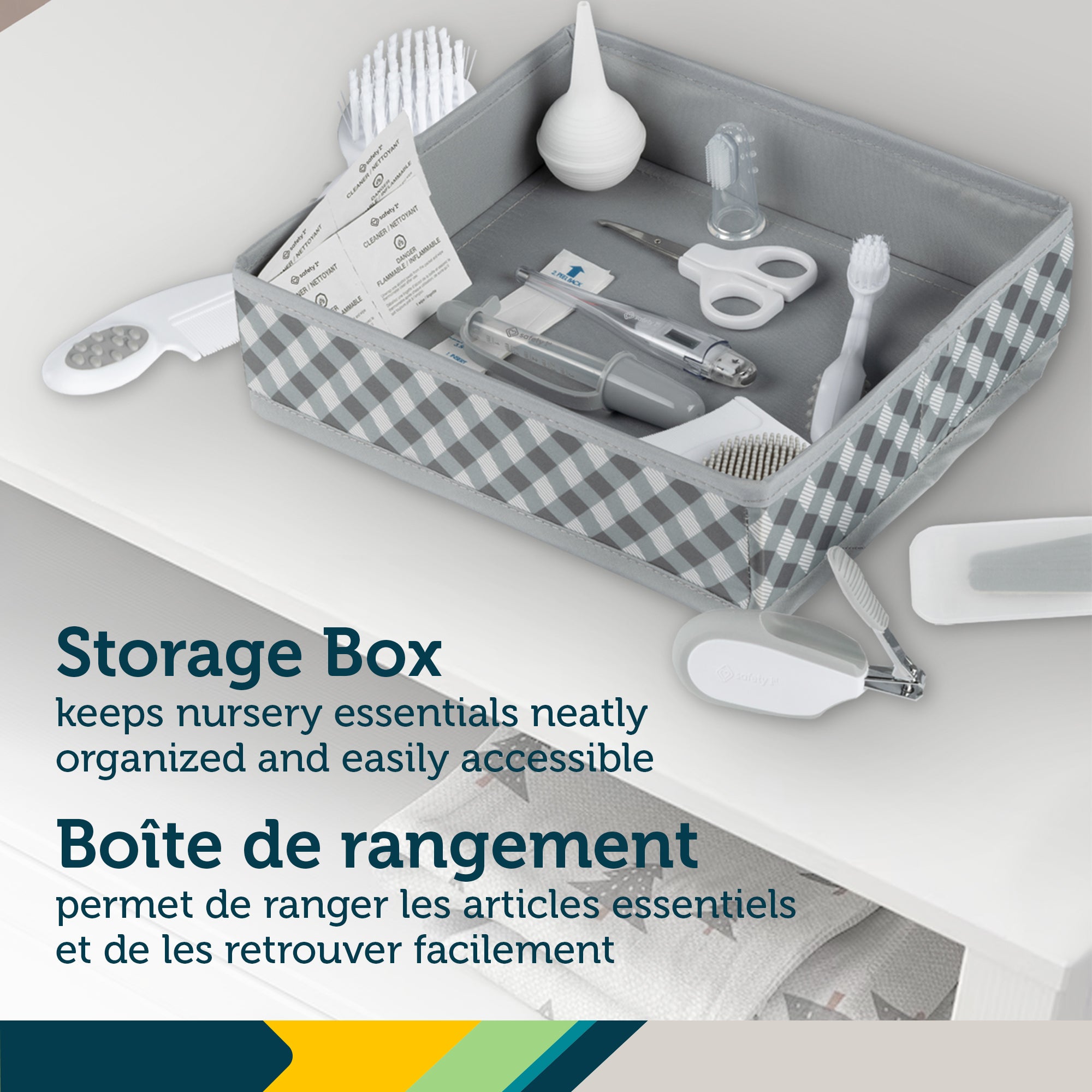 Be prepared for your new infant with the Newborn Essentials Healthcare and Grooming Kit by Safety 1st. With a group of thoughtfully selected products, this kit has you covered. Whether you are helping your little one feel better when sick with the healthcare essentials, or if you're getting them prepared for a photo op with the grooming items, you’ll be ready. Keeping these and other nursery items handy is easy with the included storage box, which gives you a neat space to organize – where ever you need it.