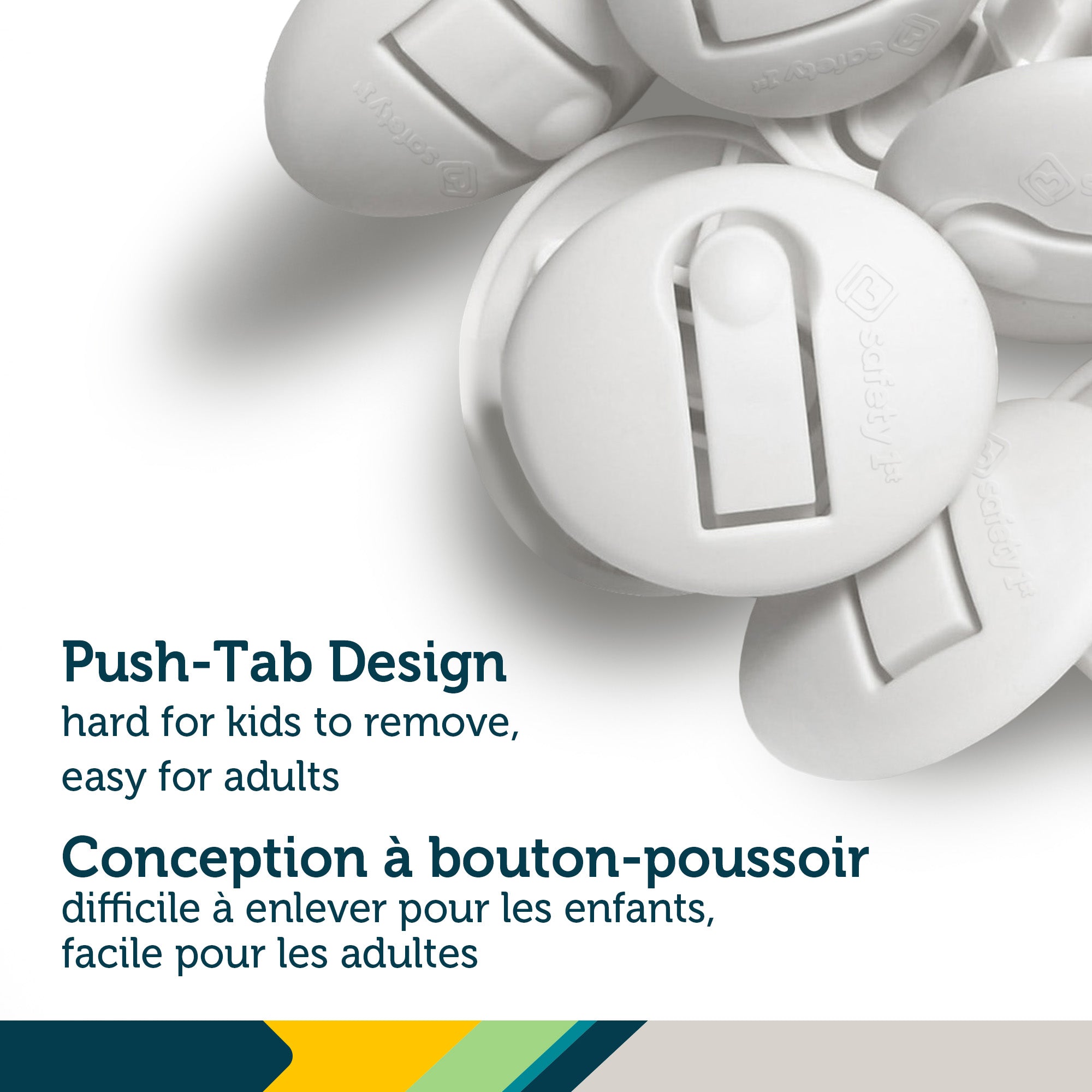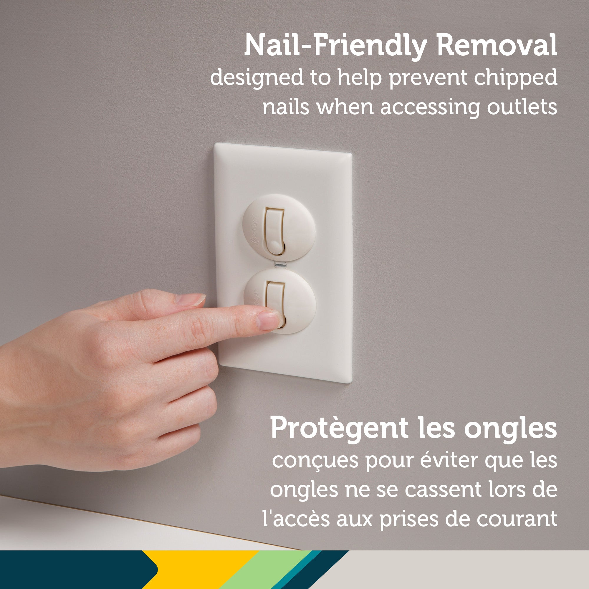 Safety 1st Secure Press Plug Protectors help safeguard your home by blocking access to unused electrical outlets, preventing little ones from inserting fingers or sharp objects. Featuring a child-resistant, push-tab design, these outlet covers are difficult for children to remove while allowing easy access for adults—without chipping nails.