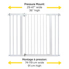 Pressure-installed gates provide flexibility in usage around the home. Wall cups stay installed to the wall while the gate can easily be removed for periods of non-use. The gate is 28" high and can be adjusted from 29" to 38" for doorways of varying widths throughout your home.