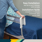 A Good night’s rest! That is what you and your little one need. Keep your little one from accidentally rolling off the bed while sleeping with Safety 1st Bed Rails. The top-of-mattress design eliminates potentially dangerous gaps between bed and bed rail. It provides a full 8″ of security above the mattress; fitting easily on a twin, full or queen-sized mattress with no loss of height. You can set the bed rail up quickly, just 3 minutes from box to bed with no additional tools required. Once set up, you can confirm with a quick glance at the SecureTech indicator that everything is locked into the proper position, and that your little one is ready to drift safely off to dreamland.