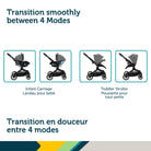 Take your little one for a spin with the Safety 1st Turn and Go™ 360 Rotating Modular Travel System. Change their view (and yours) in seconds with the 360° rotating seat. With the push of a button, effortlessly raise the handlebar to turn the seat. Now, your tiny traveler is facing the other direction, so you can keep an eye on each other or let them see the road ahead.
