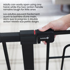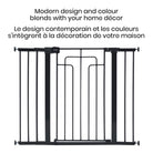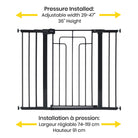Maintenant que bébé est en mouvement, la barrière métallique haute et large avec SecureTech facilite la création d'espaces adaptés aux enfants dans votre maison. À utiliser entre les pièces, le portillon facilite les déplacements dans la maison, sans avoir à le réinstaller à chaque passage. Tous les portails montés sous pression doivent être serrés de temps en temps avant qu'ils ne deviennent trop desserrés. Lorsque l'indicateur SecureTech® devient rouge, il est temps de réajuster la pression. Un portail extra-large vous permet de bloquer facilement les plus grandes allées de votre maison. Cette barrière extra haute est également conçue pour offrir une protection supplémentaire en hauteur et est idéale pour les maisons avec des bébés et des animaux domestiques. La barrière mesure 36 pouces de hauteur et peut être ajustée de 29 à 47 pouces.