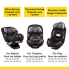 Du bébé au grand enfant, le siège d'auto Tout-en-un Continuum est là pour votre famille à travers trois étapes différentes, de 5 à 100 livres (2,3 à 45 kg).