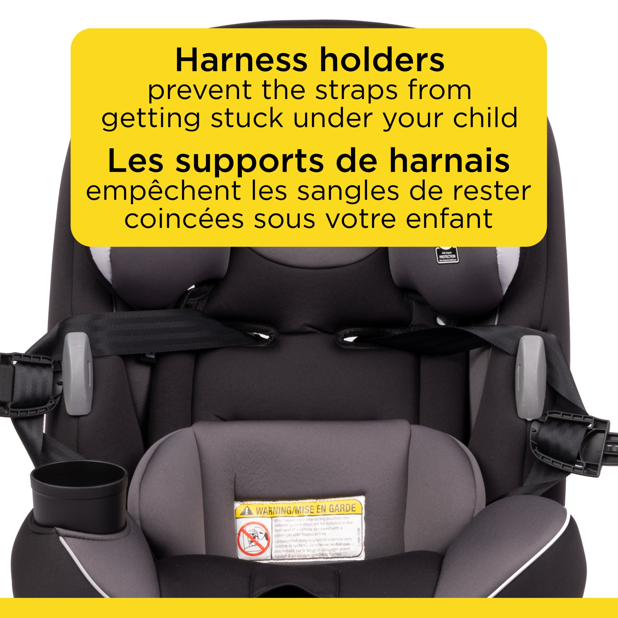 Les supports de harnais maintiennent le harnais en position ouverte, ce qui vous permet de faire entrer et sortir plus facilement votre enfant du siège auto en mode dos à la route ou face vers l'avant. Plus besoin de chercher le harnais et les clips derrière votre enfant : ils sont là quand vous en avez besoin ! Le harnais QuickFit™ offre une commodité supplémentaire dans les deux étapes en vous permettant de régler la hauteur de l'appui-tête et du harnais en une seule étape rapide et facile, ce qui permet d'offrir facilement à votre enfant en pleine croissance le meilleur ajustement. En mode rehausseur, l'appui-tête s'ajuste tout seul afin que vous puissiez continuer à obtenir le meilleur ajustement pour votre enfant.