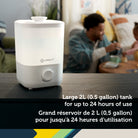 Parfait pour aider votre enfant à se sentir plus à l'aise pendant qu'il se repose, l'humidificateur crée un environnement apaisant dans votre chambre de bébé en ajoutant de l'humidité à l'air, avec un bouton réglable qui vous permet de contrôler les niveaux d'humidité.