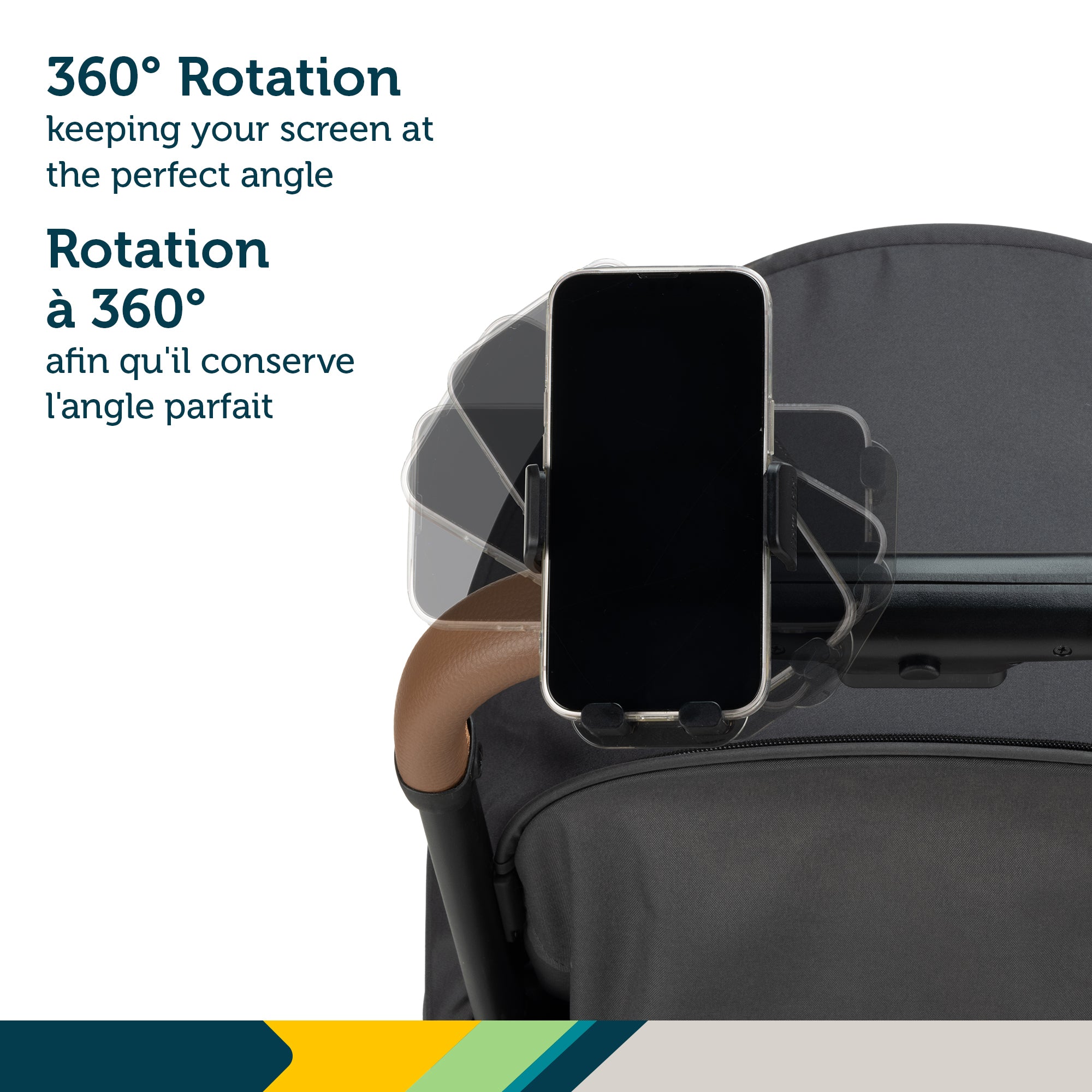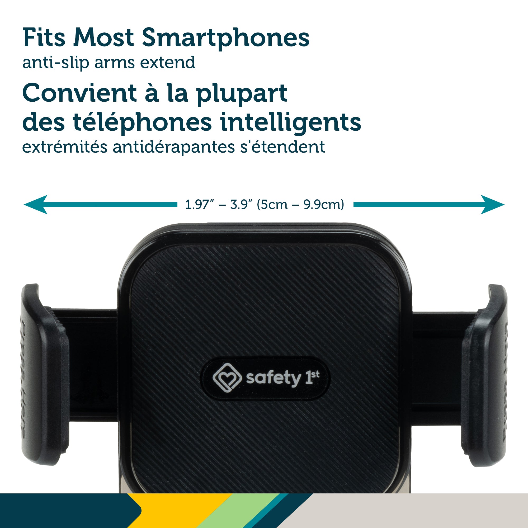Gardez votre téléphone en sécurité et à portée de main à chaque sortie grâce au support de téléphone pour poussette Safety 1st, compatible avec la plupart des smartphones, y compris les iPhone et Android les plus courants. Doté de bras antidérapants extensibles de 5 à 10 cm et d'une sangle Velcro résistante qui se fixe rapidement au guidon de la poussette, ce support offre une prise en main ferme et stable, sans outil. La rotation à 360° vous permet d'ajuster l'écran en mode portrait ou paysage, pour que vos cartes, votre musique et vos messages soient toujours à l'angle idéal.