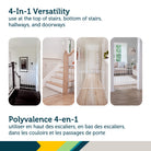 Idéal pour une utilisation en haut des escaliers, il s'installe également en bas des escaliers et entre les pièces pour plus de polyvalence. Sa conception sans cadre permet de dégager les passages et d'éviter les trébuchements lorsqu'il est ouvert.
