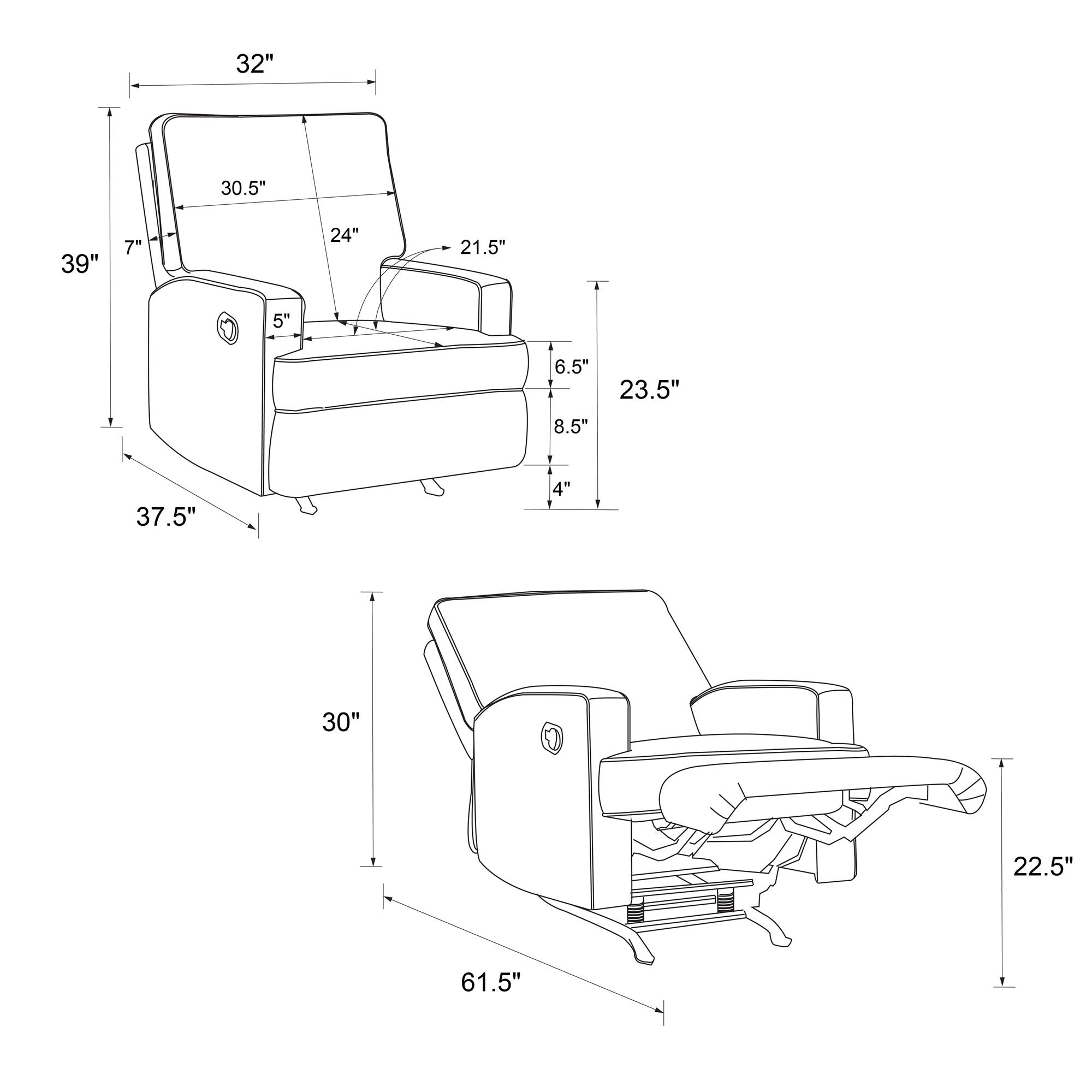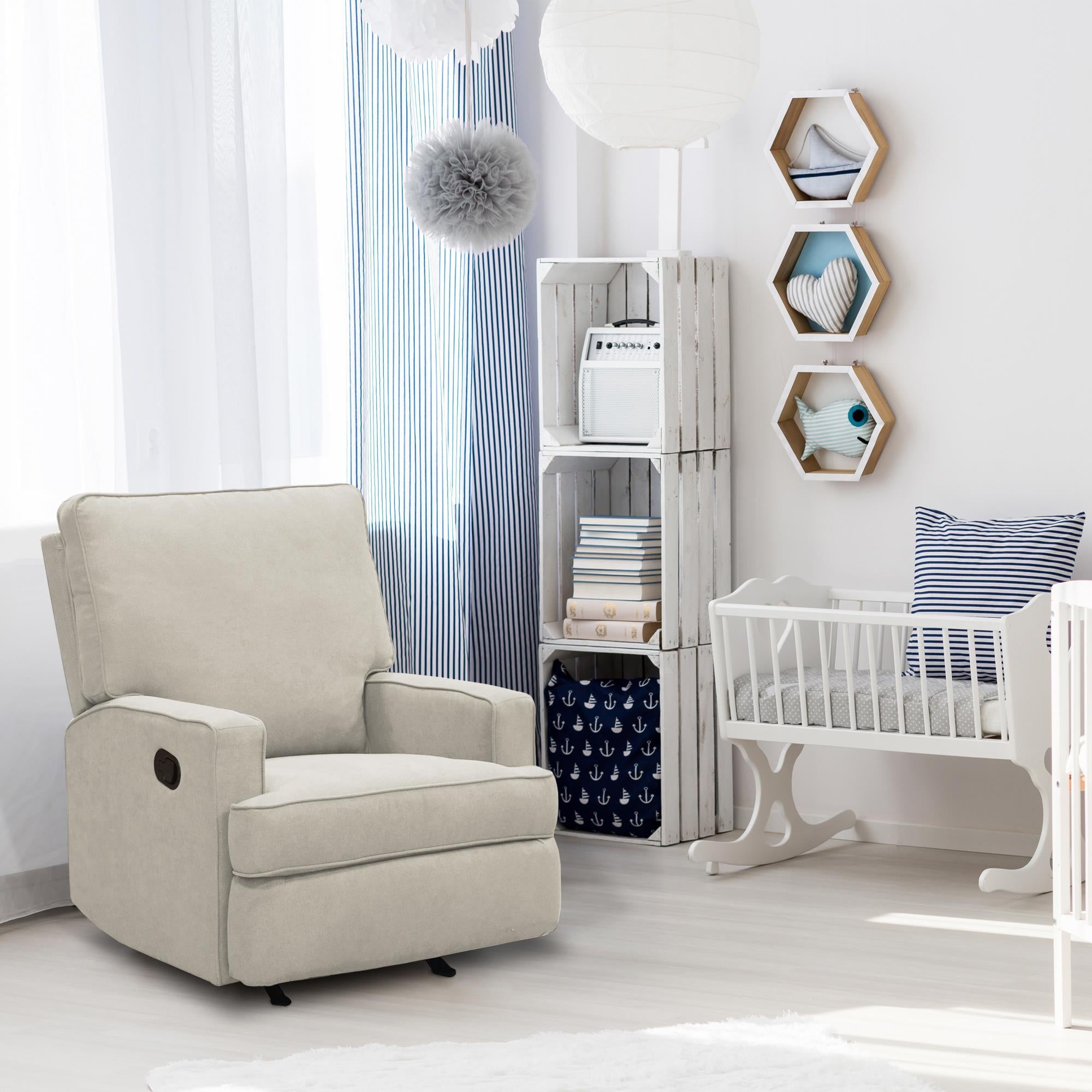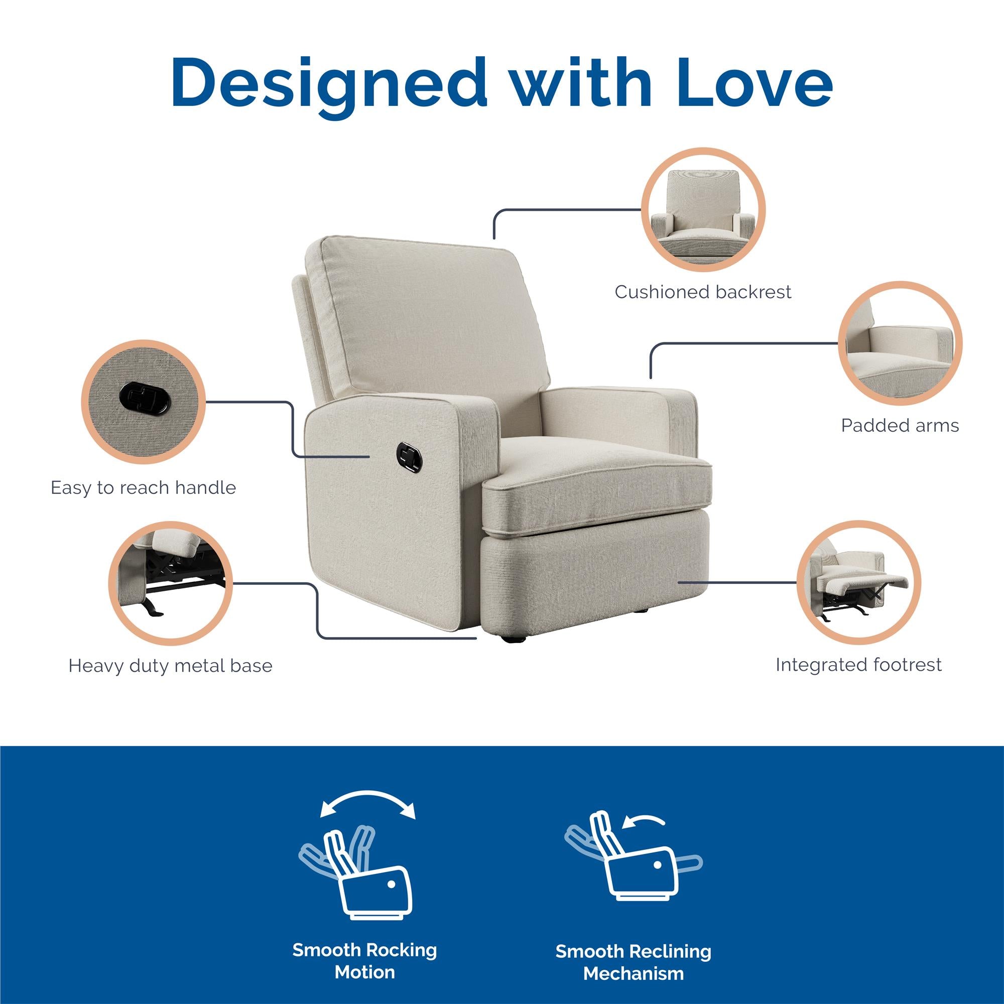 A solution to your nursery design dilemma is closer than you think - meet the Baby Relax Salma Rocker Recliner Chair, a 2-in-1 piece that gets the job done. With fluid rocking and reclining mobility able to encourage fast sleep, the gentle rhythm of the chair will soothe even the fussiest infant. Designed with ultra-smooth velvet upholstery that has resilient qualities, the Salma is a pushback chair that can blend with any living room or bedroom decor. The outside arm release handle makes it easy to recline to your preferred position with a lift up footrest. Its comfort driven design features include soft corners, T-cushion foam filled pocketed coil seating, a plush pillow cushioned backrest, and padded armrests to give parents a comfortable hub for late night feedings. Made to grow with your family, this multi-position chair is durably constructed with quality materials, such as a strong plywood frame, no-sag spring foundation, steel recline mechanism, and metal base, for unparalleled support. Plus, you can stay rest assured that this chair has passed strict safety testing and does not contain any flame retardant chemicals. And on a high point, you only need to spare 15 minutes for assembly.