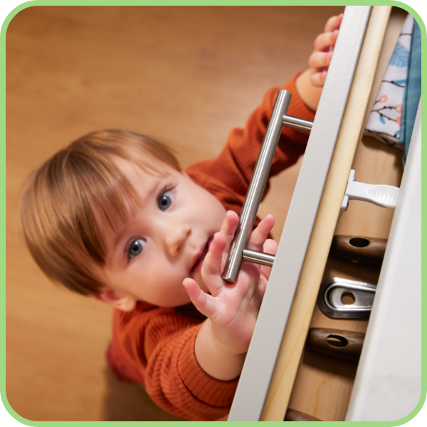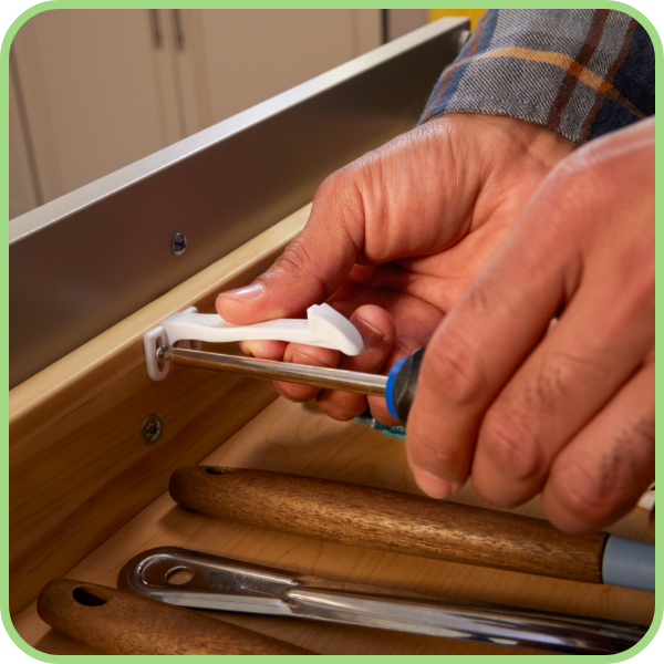 Your little one is curious and eager to explore to world. The Safety 1st Cabinet and Drawer Latches help babyproof your home and are sturdy enough for even the cleverest of toddlers. Each latch features a wide easy-grip surface, giving you the quick access you need to whatever’s inside. Our latches install easily inside your cabinets or drawers, providing the perfect coverage while remaining out of sight from both kids and visitors.