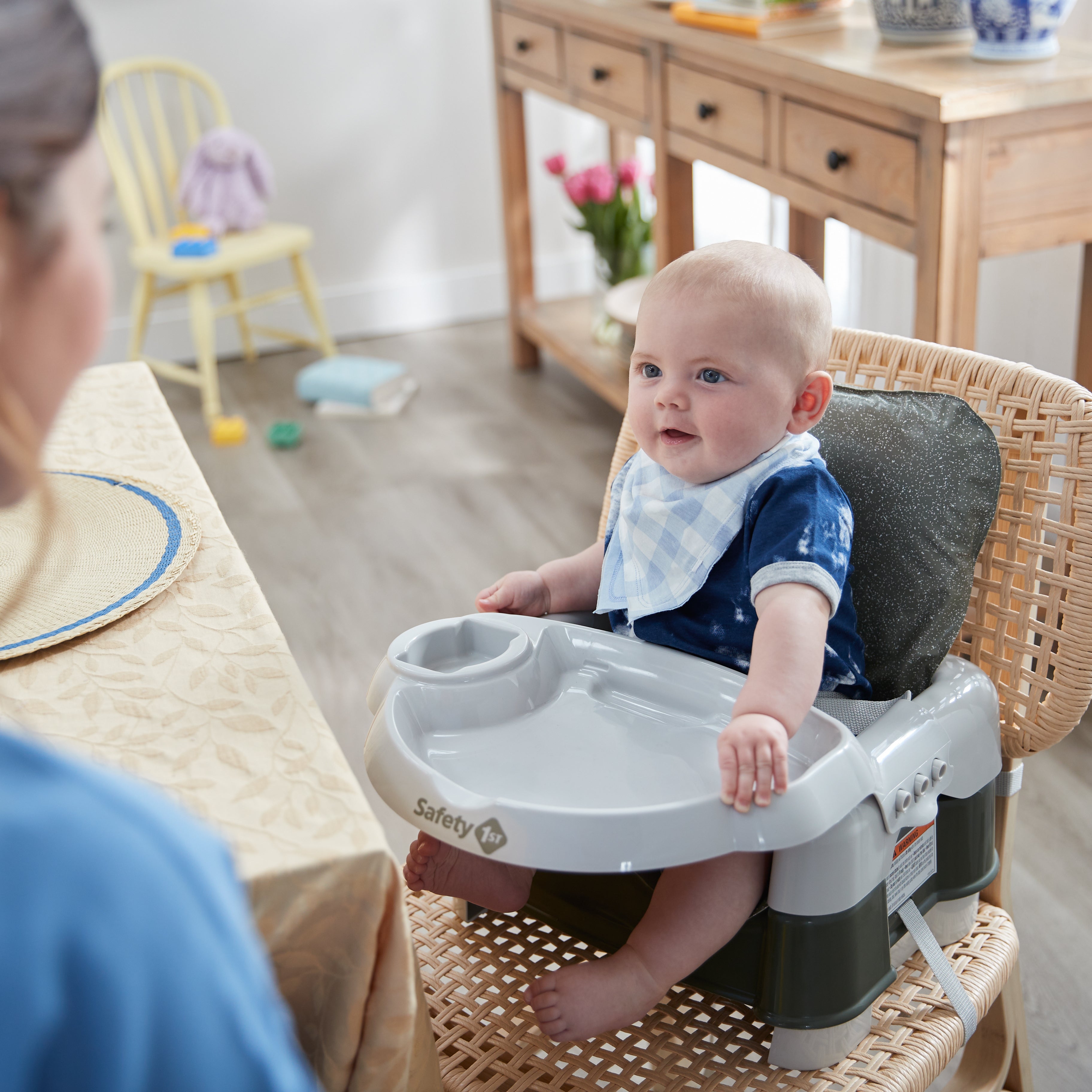 With its 2-level height adjustment and 3 tray positions, the Deluxe 5-in-1 Sit, Snack & Go Convertible Booster Seat fits children from 6 months to 4 years; up to 50 lbs. It starts with a full seat that includes armrests and a tray for baby, and transitions through the different modes to fit your little one as they progress from spoon-fed baby food to eating meals at the table. In each mode, the portable booster folds for easy storage, making it a great option for parents on the go. It also features a dishwasher-safe tray and easy-wipe seat pad for quick and easy clean-up.