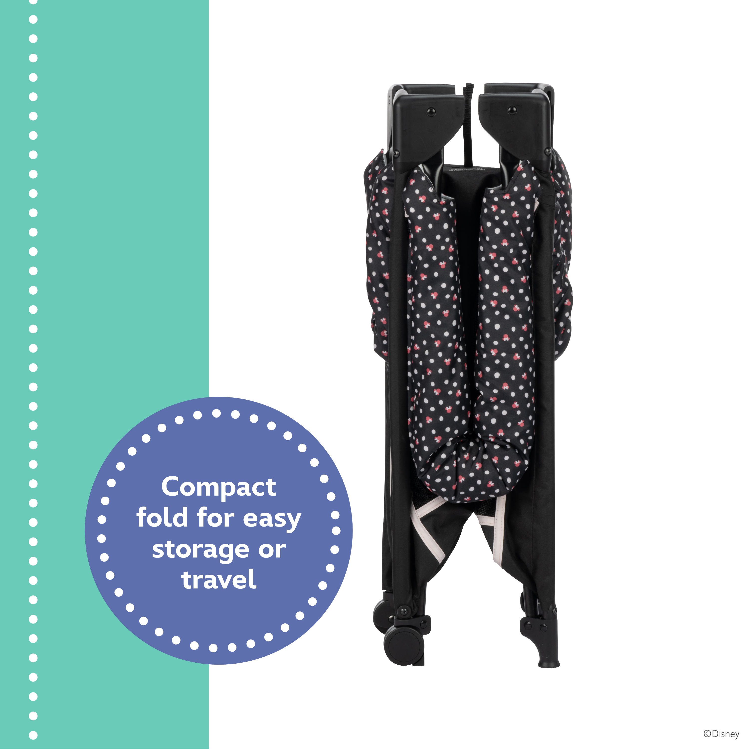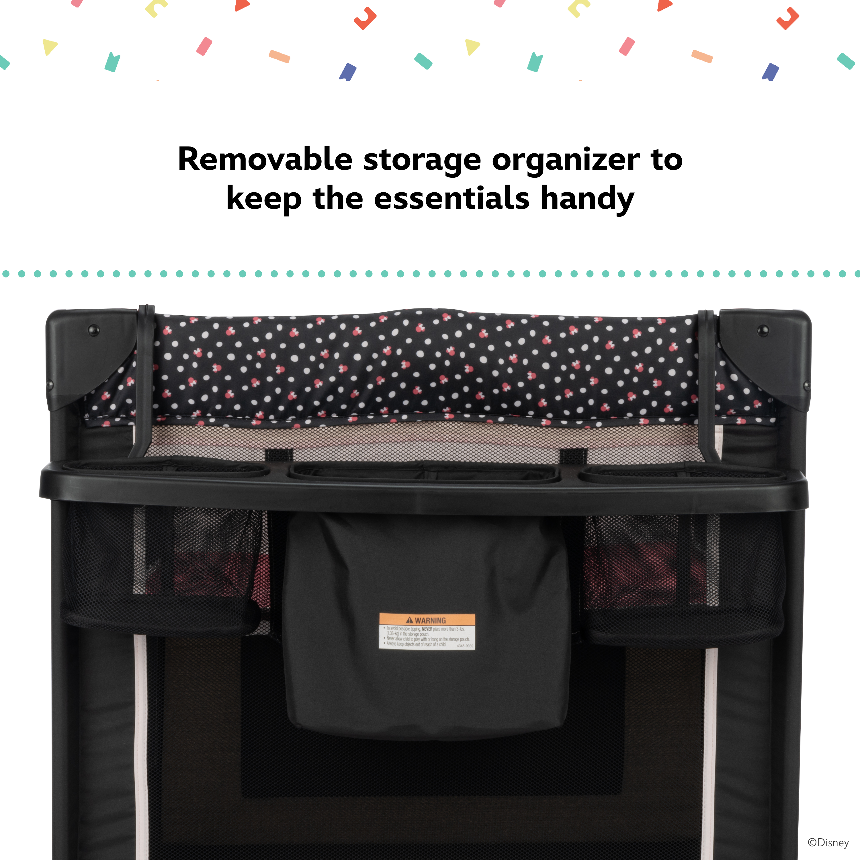 As your little one grows, you’ll both enjoy the adorable Disney play yard pattern in some of Mickey or Minnie’s favorite colors where they can use their imagination as they explore in a secure space. Meanwhile, you can go hands-free to tackle your to-do list. The play yard’s see-through mesh sides offer increased air flow, and let you easily check in with each other.