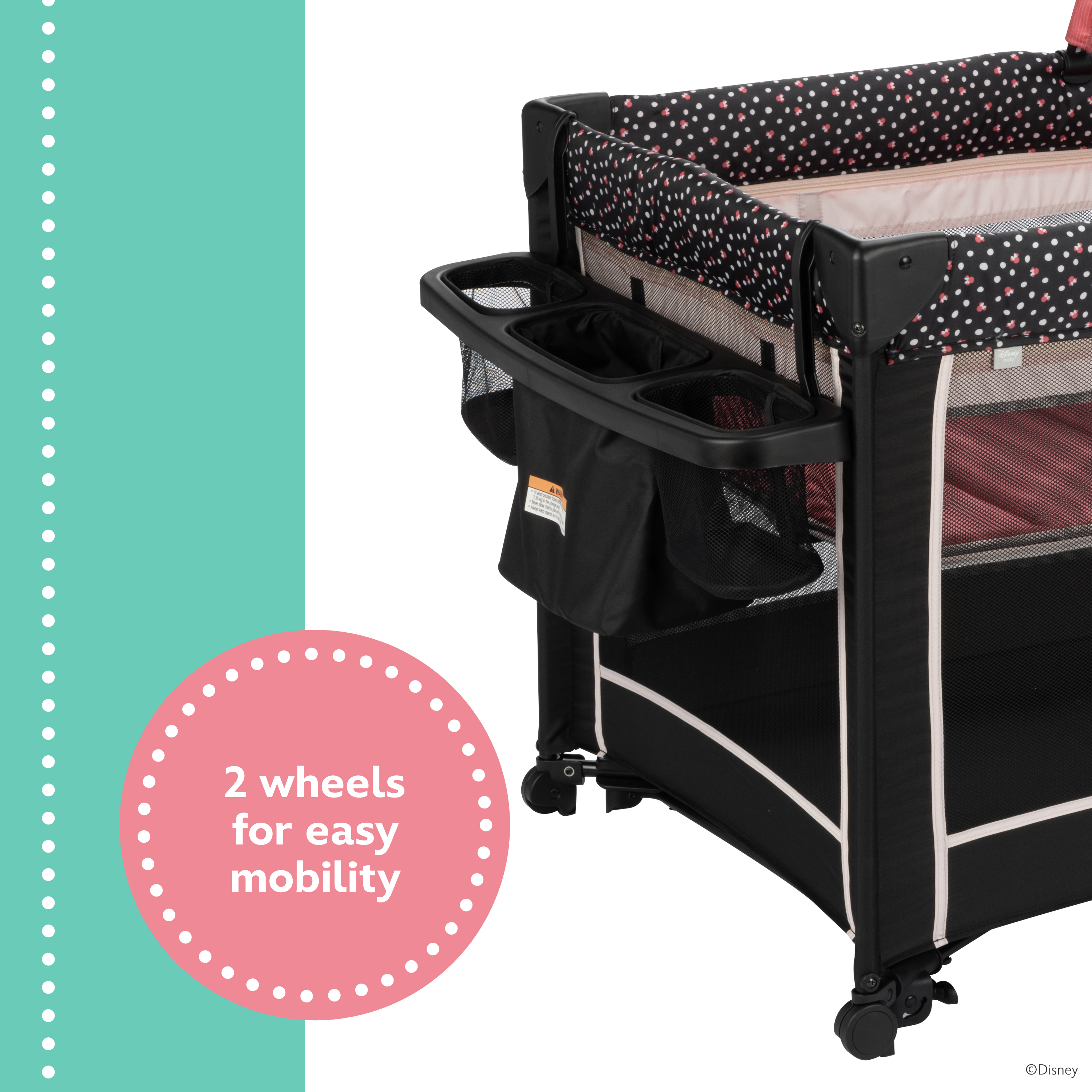 Give your little Disney fan the perfect place to rest, snooze, and entertain themselves with the Disney Baby®2-in-1 Play Yard with Rocking Bassinet. From those first precious moments with your newborn, to watching your toddler play all by themselves, this 2-in-1 essential will be your go-to piece at home, and on-the-go.