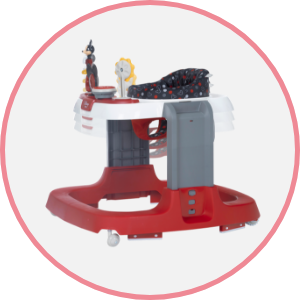 Encourage first steps with our Ready, Set, Walk! DX Developmental Walker. The included developmental toys and sweet songs will delight your baby as they learn to walk. The 3 height positions adjust to support your growing child, while the extra-wide base provides added stability. The tray has plenty of space for baby's snacks and ample room to play with toys. There’s no need to worry about messes with the easy-to-remove, machine-washable seat pad. The walker folds and locks compactly for storage or travel. With a weight range up to 30 lbs., it’s ideal for babies getting ready to walk.