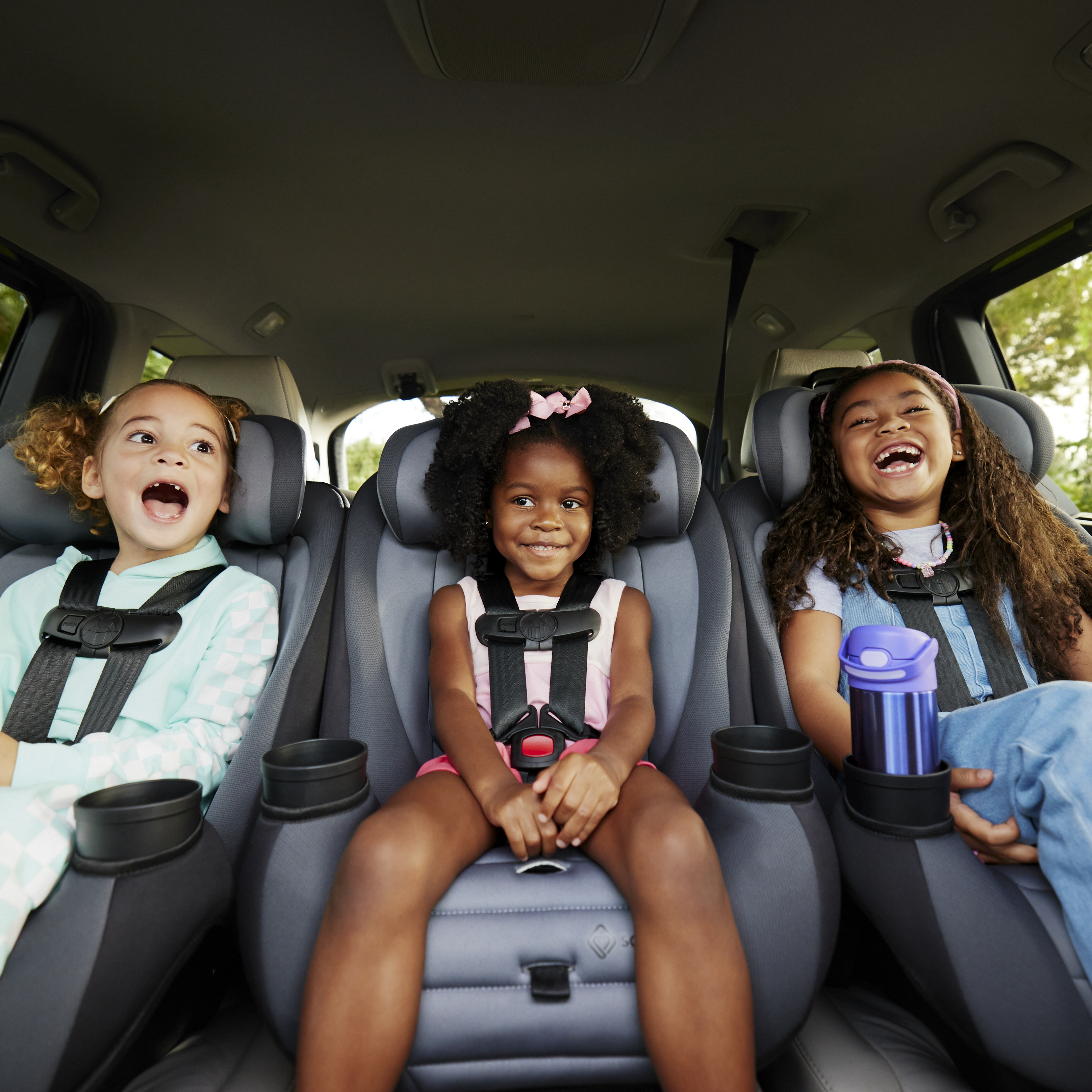 The slim design fits 3 across the back seat of most vehicles so it’s perfect for growing families. The hook-style LATCH makes installation easy. An adjustable 5-position headrest and harness ensures the car seat keeps up with your little one. Airplane ready, its compact design makes for a better travel experience from the airport through the flight.
