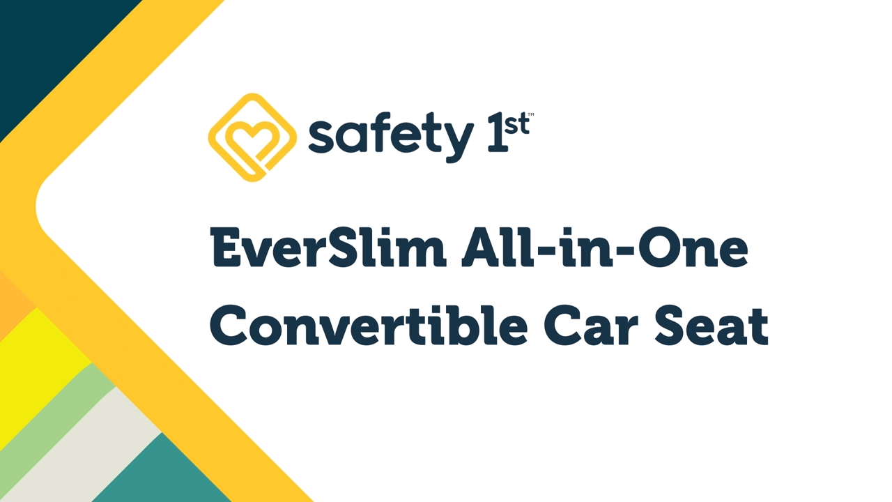 The Safety 1st EverSlim 4-in-1 Convertible Car Seat keeps your child secure and comfortable through every age and stage, with 4 modes of use—rear-facing (5–40 lbs., 19"–40"), forward-facing (30–65 lbs., 34.4"–49"), belt-positioning booster and backless booster (40–100 lbs., 43.4"–52").