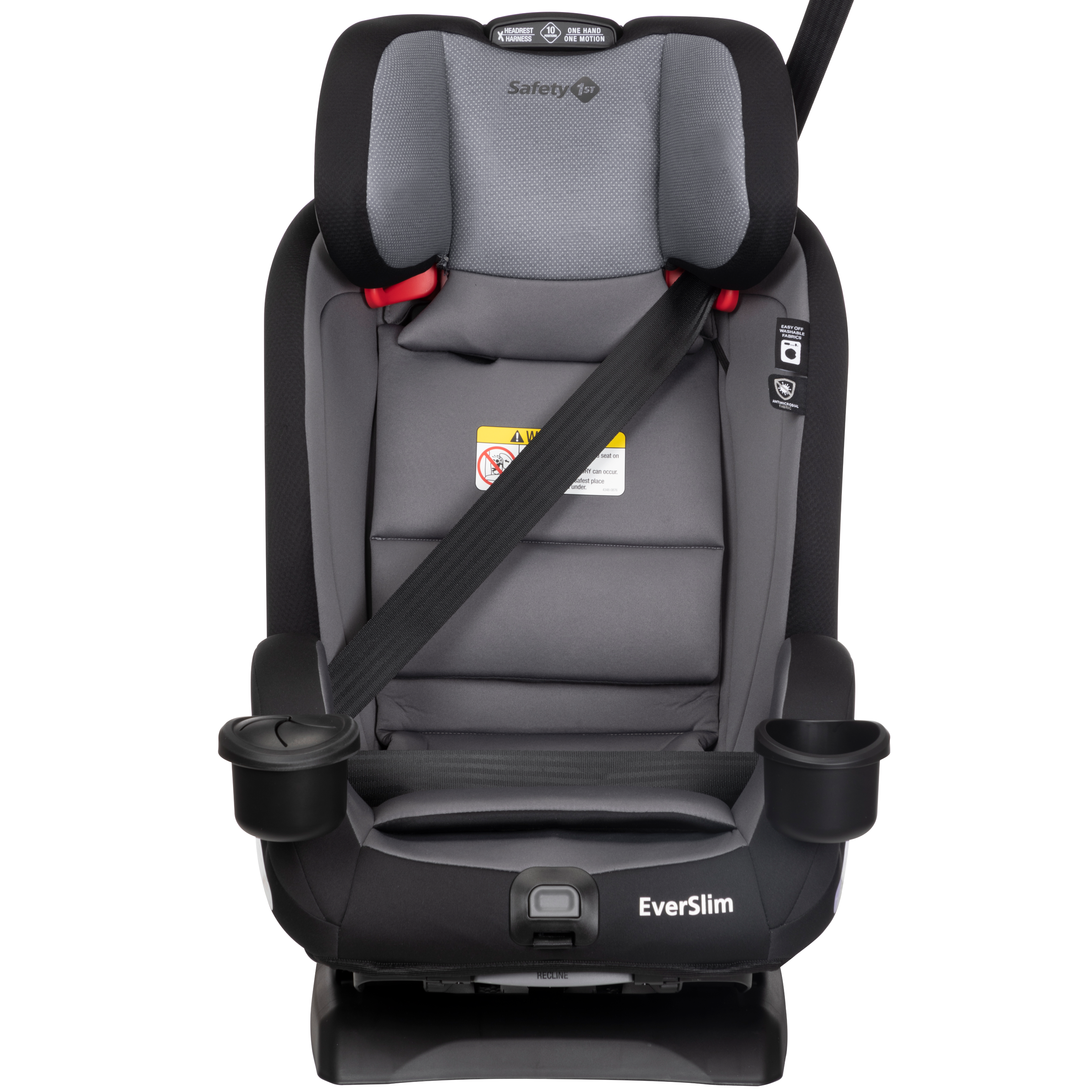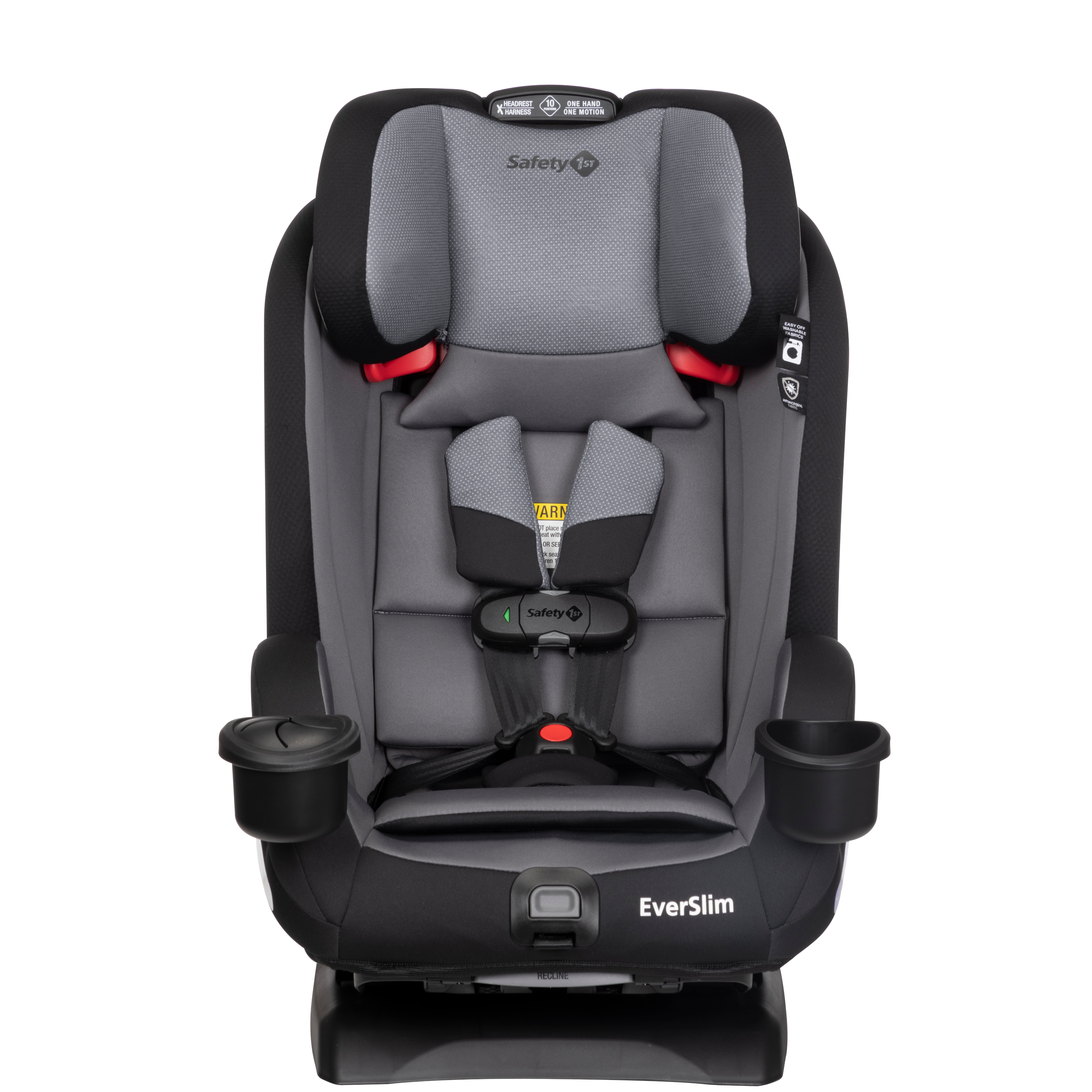 The Safety 1st EverSlim 4-in-1 Convertible Car Seat keeps your child secure and comfortable through every age and stage, with 4 modes of use—rear-facing (5–40 lbs., 19"–40"), forward-facing (30–65 lbs., 34.4"–49"), belt-positioning booster and backless booster (40–100 lbs., 43.4"–52").