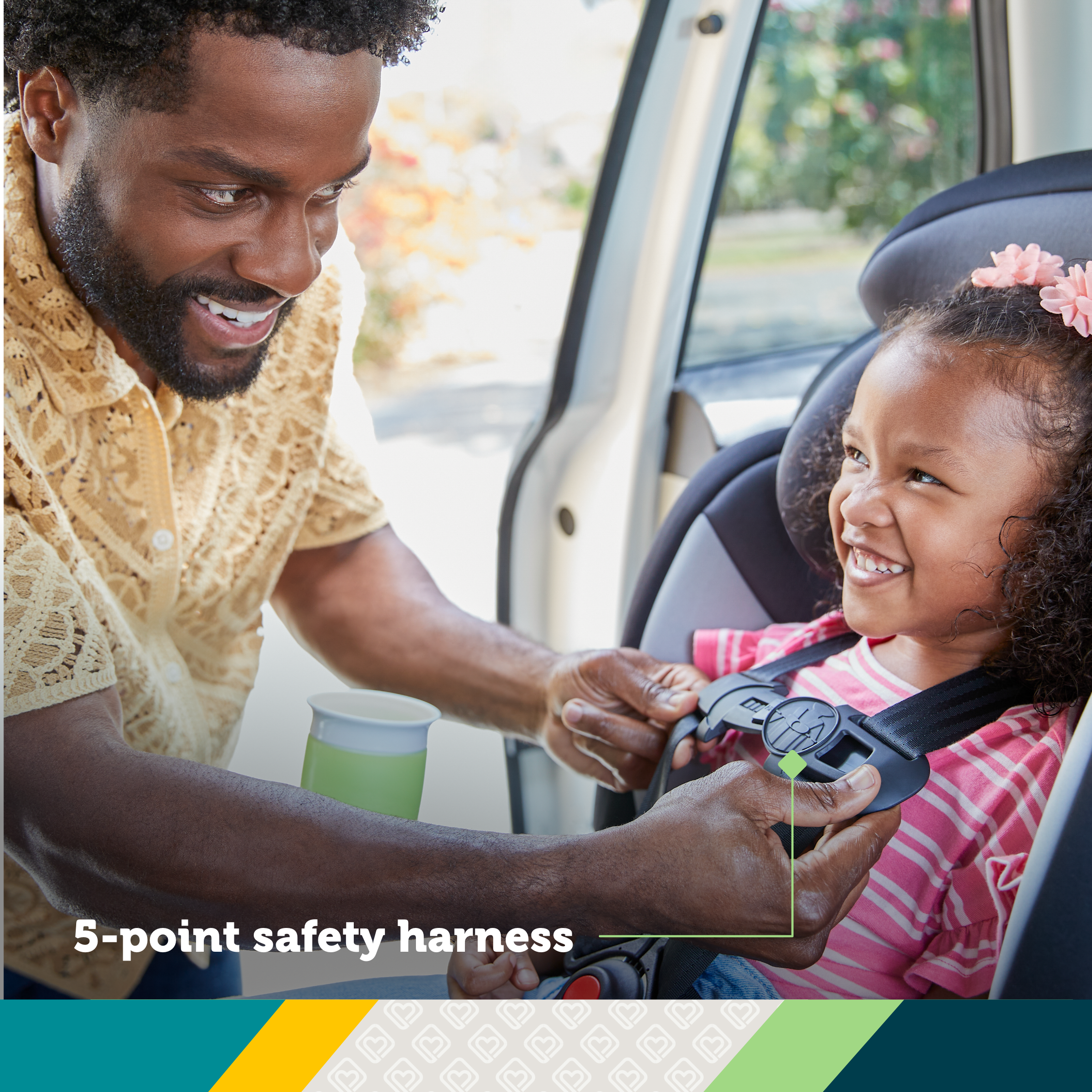 The Safety 1st Grand 2-in-1 Booster Car Seat is designed with versatility in mind. This high back booster car seat is made for families with growing children. This 2 in 1 booster seat has two modes of use. As a highback booster seat, it features a 5-point harness booster seat, accommodating children in a forward-facing car seat position from 40–65 lbs., As your child grows, it transitions into a belt-positioning car booster seat for weights ranging from 40–100 lbs.