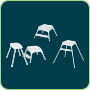 Big kids can enjoy meals using the low stool, table and low stool, or high stool (3–5 yrs; up to 50 lbs.). It also functions as two seats in one. With the booster (6 mo–5 yrs) and stool (3–5 yrs.), you can seat two kids at the same time. (Both seats fit kids up to 50 lbs.)