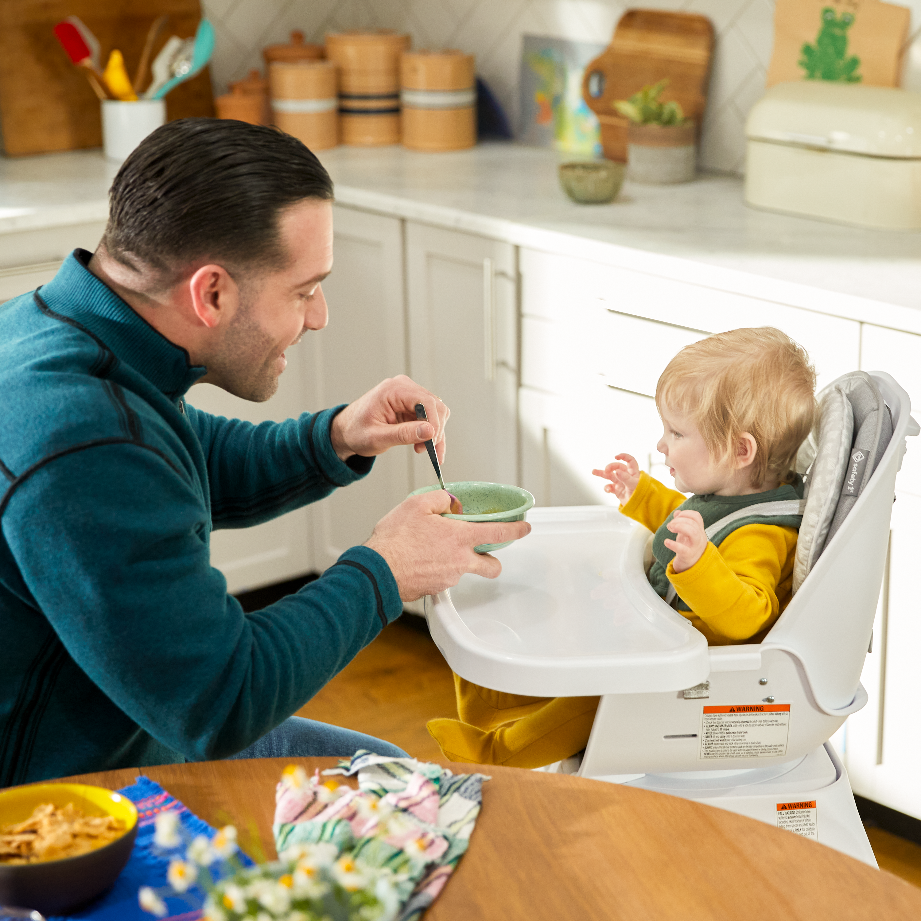 The Grow and Go™ All-in-One Rotating High Chair offers mealtime fun for every age and stage, with 9 modes to suit all your family’s needs—from infant seat with recline to the big kid joining you at the table.