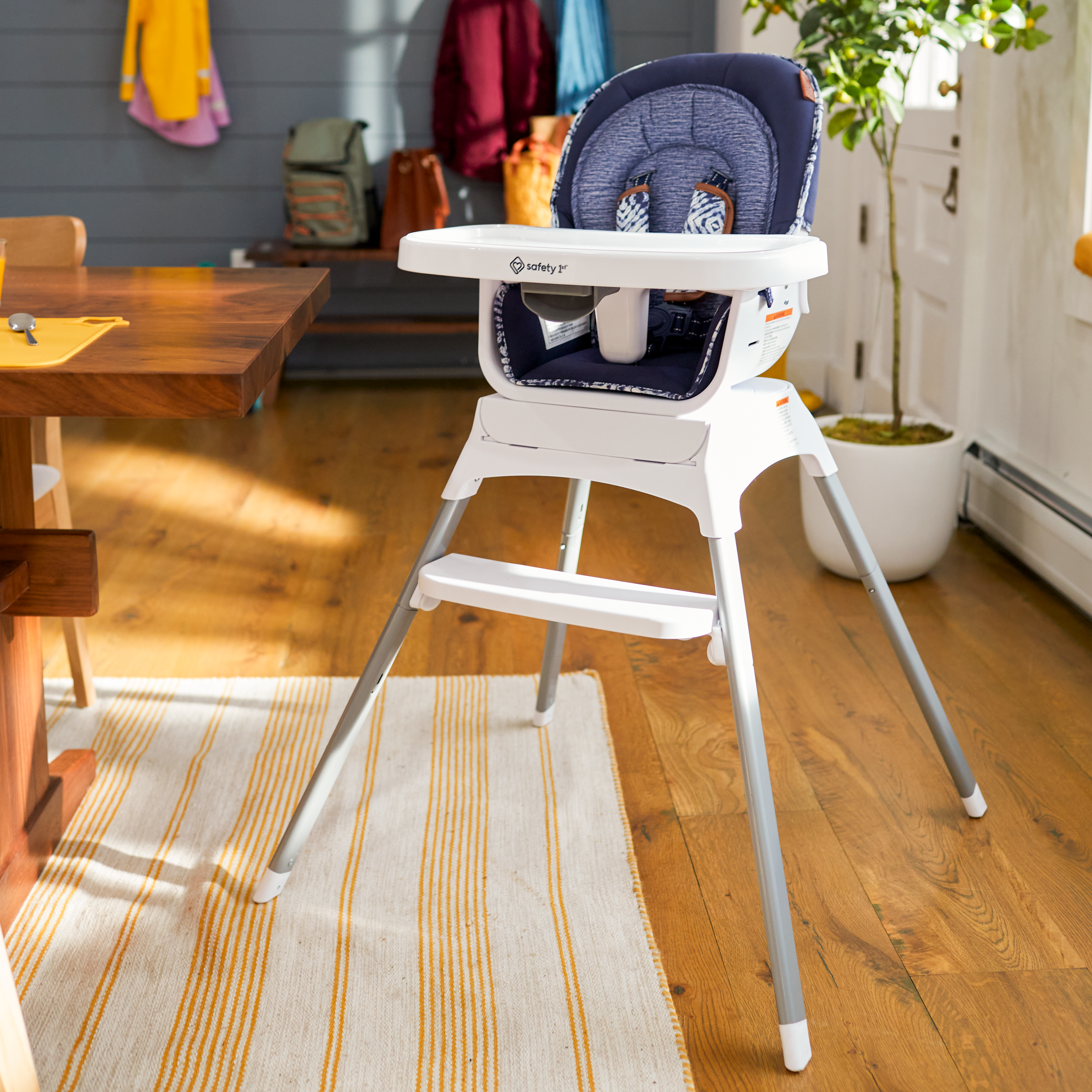 High chair modes: Infant mode with 3 recline positions, and upright mode with or without tray. (0–3 yrs; up to 40 lbs.) When the high chair is used in an upright position, it rotates 360°, allowing for easy feeding at every meal. It can be used as a booster in infant mode and toddler mode (with no tray) (6 mo–5 yrs; up to 50 lbs.). To accommodate your toddler’s growing legs, the high chair has a 2-position adjustable footrest.