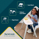 Big kids can enjoy meals using the low stool, table and low stool, or high stool (3–5 yrs; up to 50 lbs.). It also functions as two seats in one. With the booster (6 mo–5 yrs) and stool (3–5 yrs.), you can seat two kids at the same time. (Both seats fit kids up to 50 lbs.)