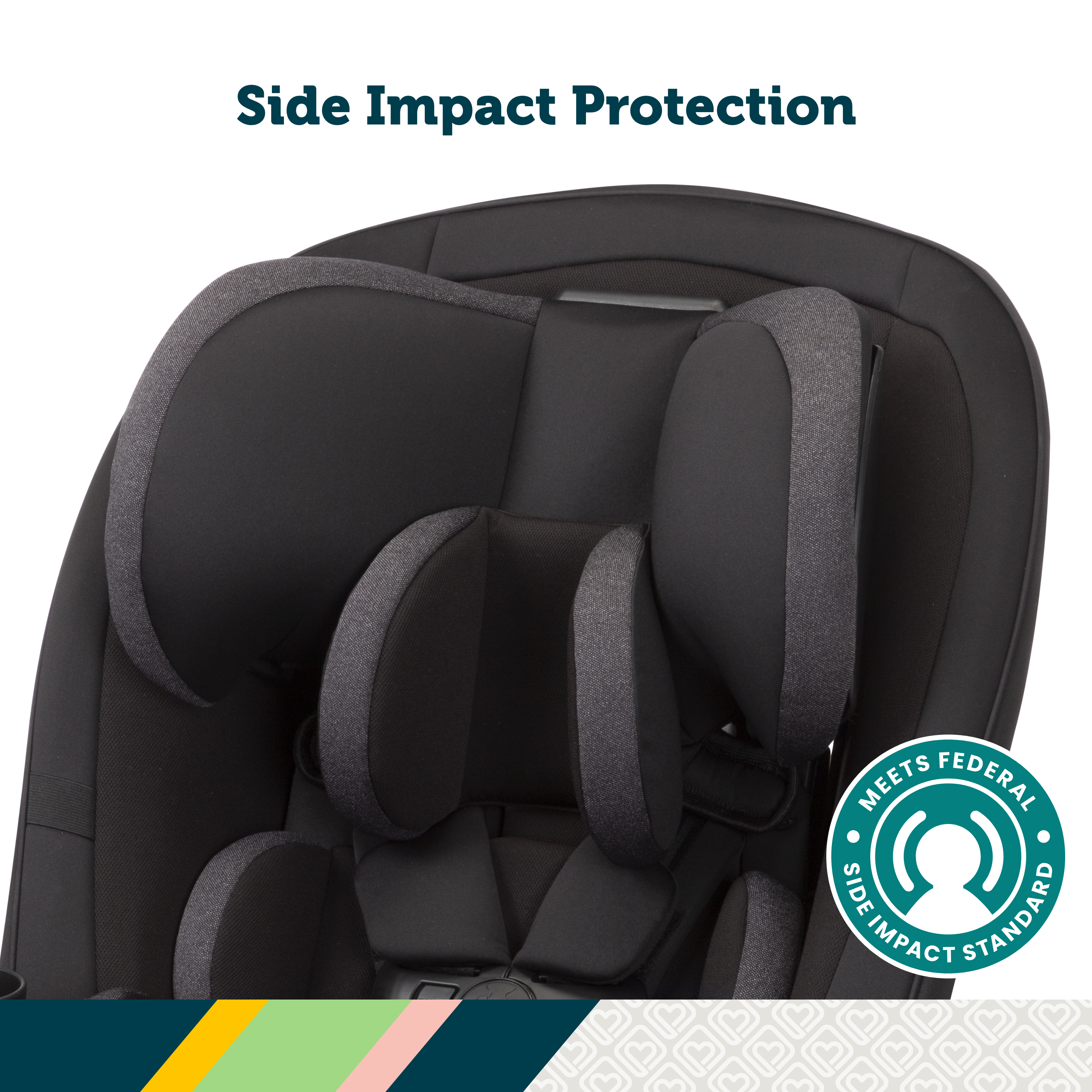 Our convertible car seat has 3-position recline to get the best possible fit in your vehicle. When flailing arms and legs make it hard to get kids in and out of the seat, our harness holders keep straps out of the way. And since messes are bound to happen, the machine-washable and dryer-safe seat pad removes easily for quick cleaning. Engineered and tested to meet or exceed federal safety standards. Meets federal Side Impact standard.