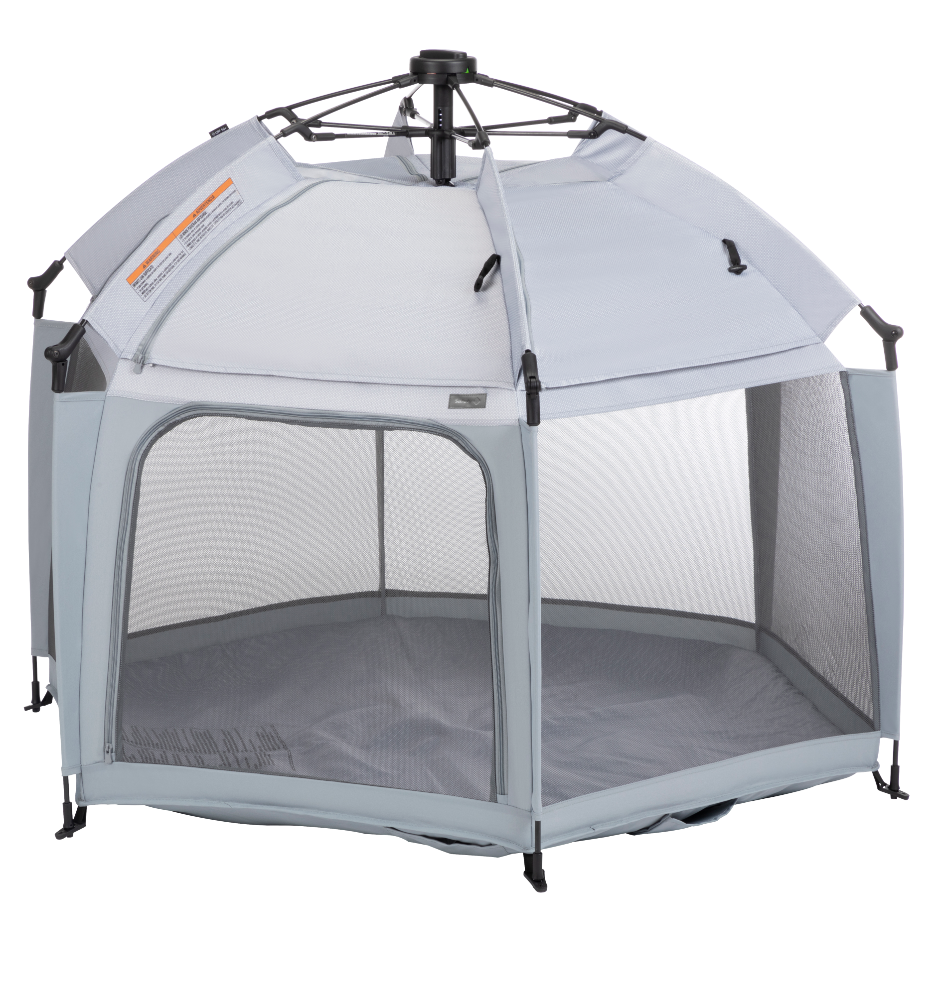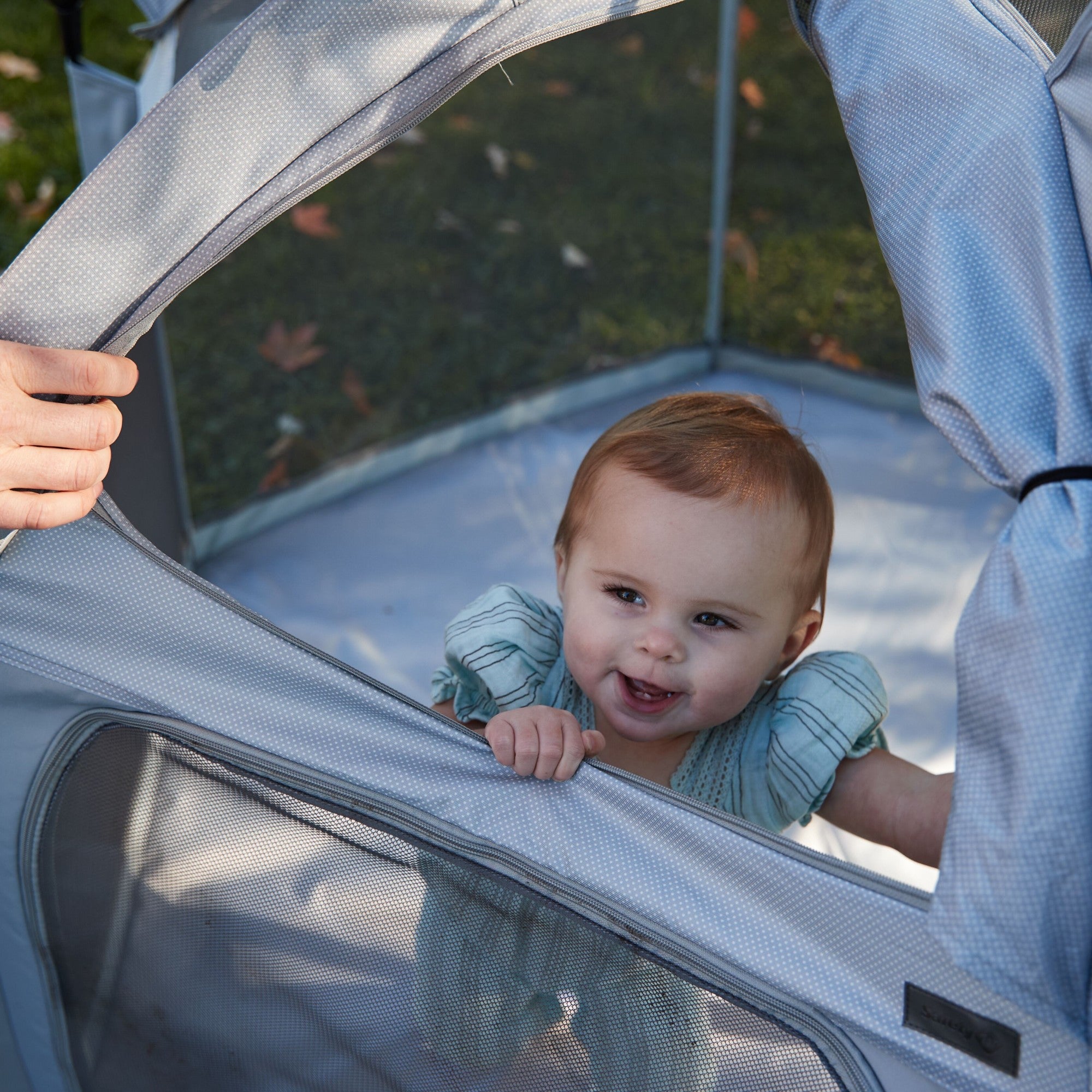 Whether you’re off to the park, Grandma’s house, or your own backyard, the Safety 1st InstaPop Dome Play Yard is the perfect place for your little one to entertain themselves or watch the action around them. Because it’s so easy to use and sets up in a snap, this will be your favorite go-to for travel with baby or relaxing at home. Once the play yard is popped up, choose how much light you'd like to let in through the dome roof. The roof windows zip closed for shade, or open for sun and added airflow. The breathable mesh sides allow airflow and visibility. When playtime is over, packing up is a cinch. Simply, press the play yard down, snap it into place, and you’re good to go. This product is designed with a firm,