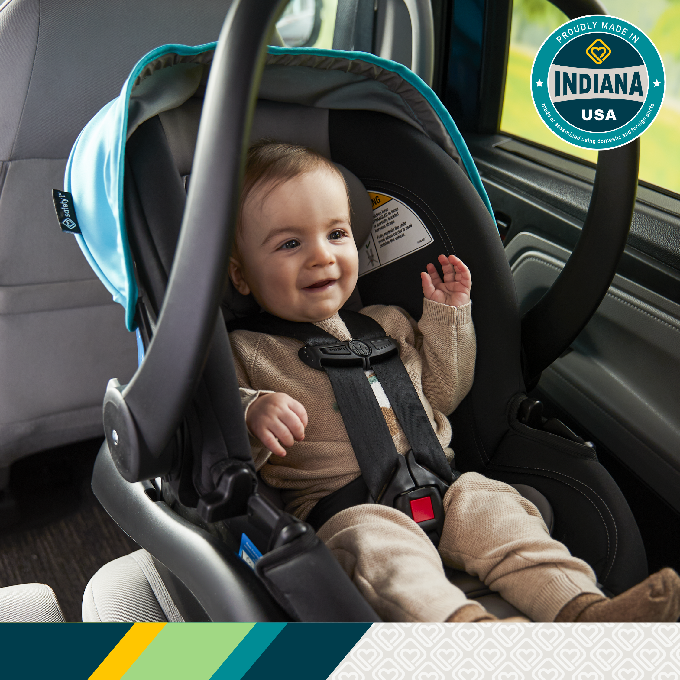 Give baby a comfortable, secure fit with the ultra-lightweight Safety 1st onBoard™ FLX Infant Car Seat. Weighing less than 8 lbs., this lightweight car seat is so easy to carry. The 4 harness heights are spaced just right to give your child a better fit from 4–30 lbs. and up to 32". The buckle adjusts two ways so that you can customize not only the length, but also the buckle’s position on your child. Smaller babies get the extra support they need with head and body inserts that can be removed as they grow. The infant car seat is also designed with a reclined body position for a more secure ride.