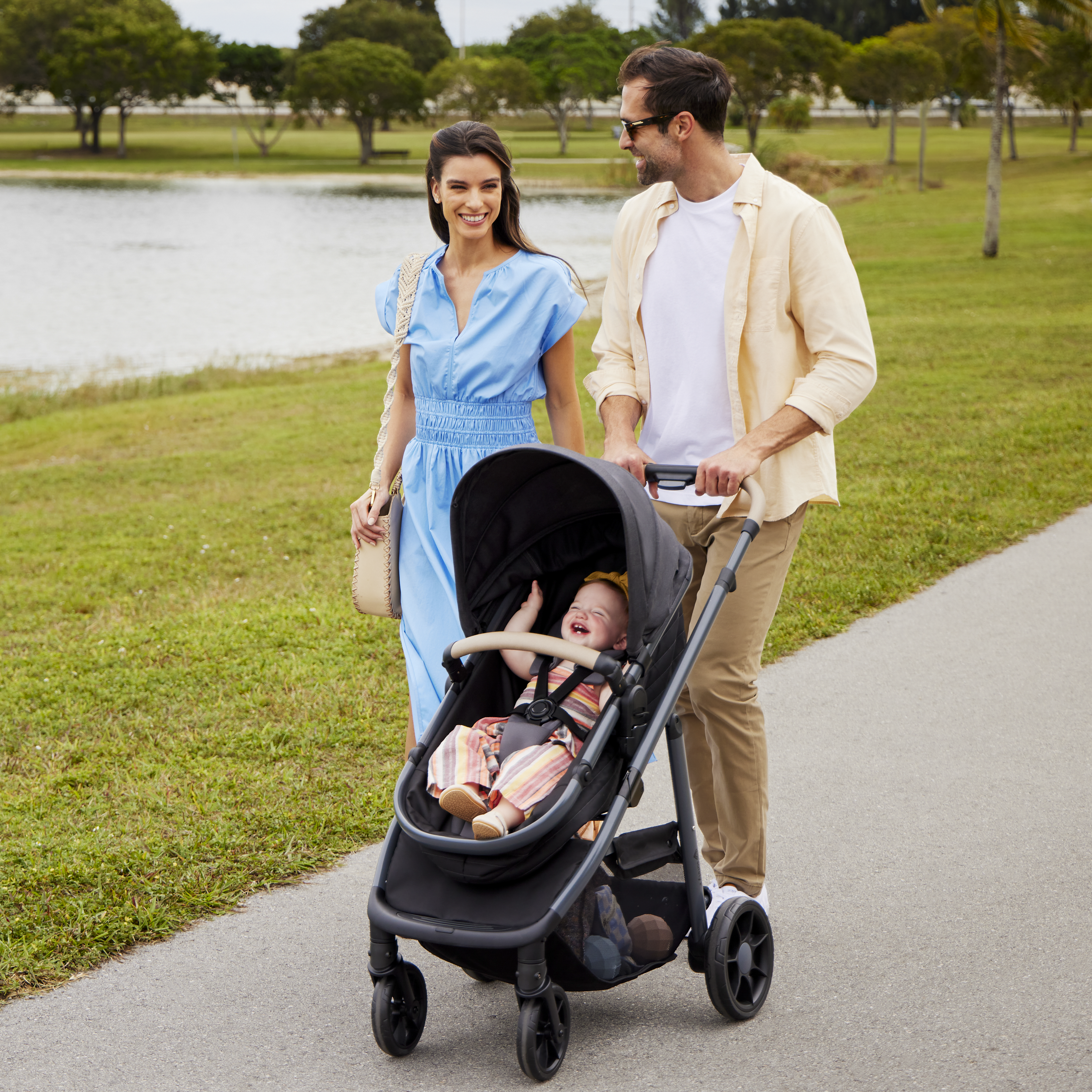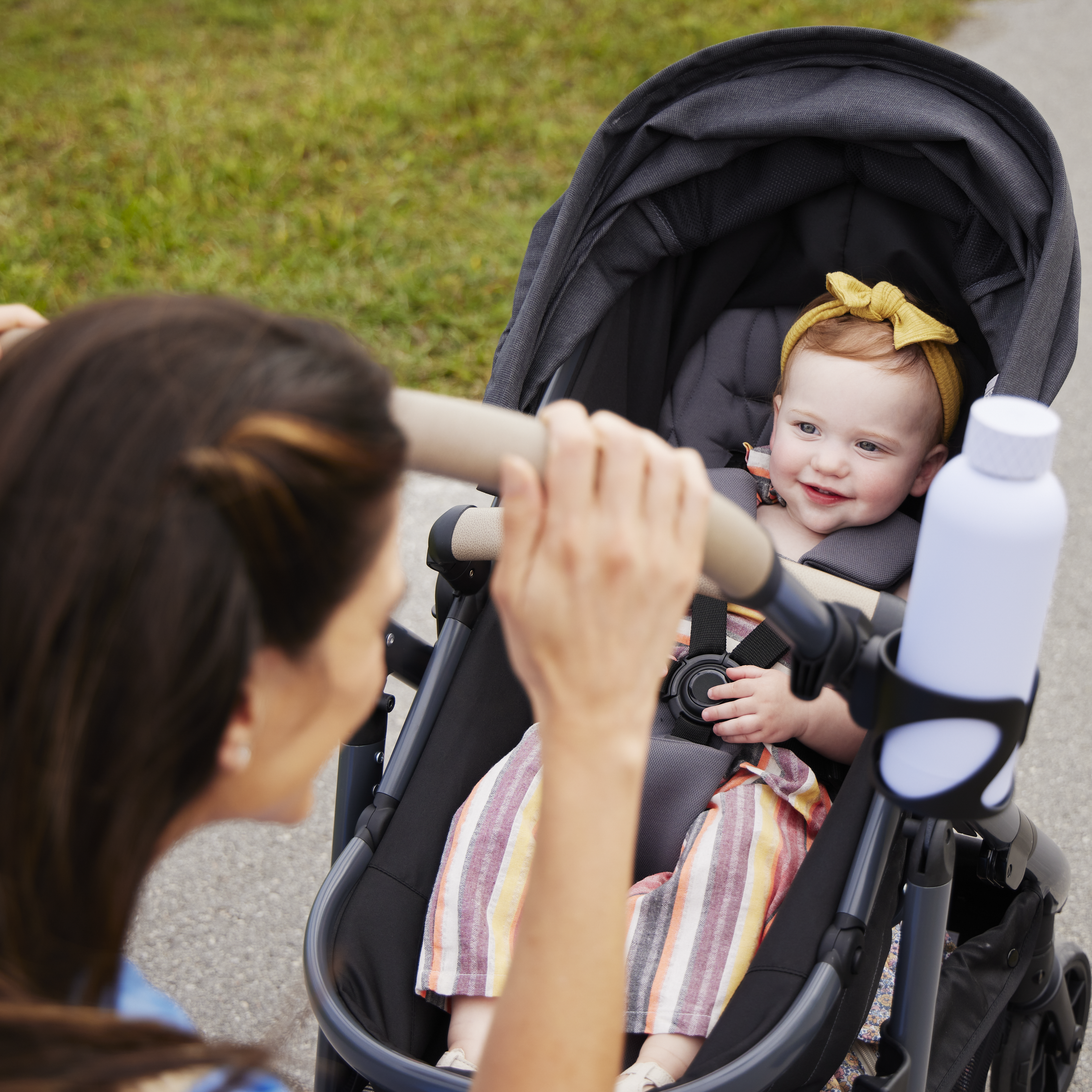 With six different strolling options for parents on the go, the Safety 1st onBoard™ Slide 6-in-1 Travel System with SafetySlide™ Base is the perfect lightweight car seat and stroller combo for your family. This travel system includes the onBoard™ Slide Infant Car Seat featuring SafetySlide™ Base. The innovative design of the car seat’s base makes it easier to get baby in and out of the car— even from the middle seat. Simply slide your baby toward you, lift, and go. No more back strain and head bumps. The SecureTech™ red-to-green indicators on the seat’s base allow you to see when your base is locked in place when using the SafetySlide™ feature. Plus, enjoy quick, easy installation every time without having to tighten the connectors manually—by easily attaching the base to the vehicle seat in just seconds with the rigid LATCH connectors.