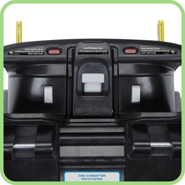 When using the vehicle belt, installation is simplified with SecureTech™—Safety 1st’s innovative technology that solves the most common installation problem 7 out of 10 parents unknowingly have: loose vehicle belt tension. The red-to-green visual indicators show when the seat belt has tension.