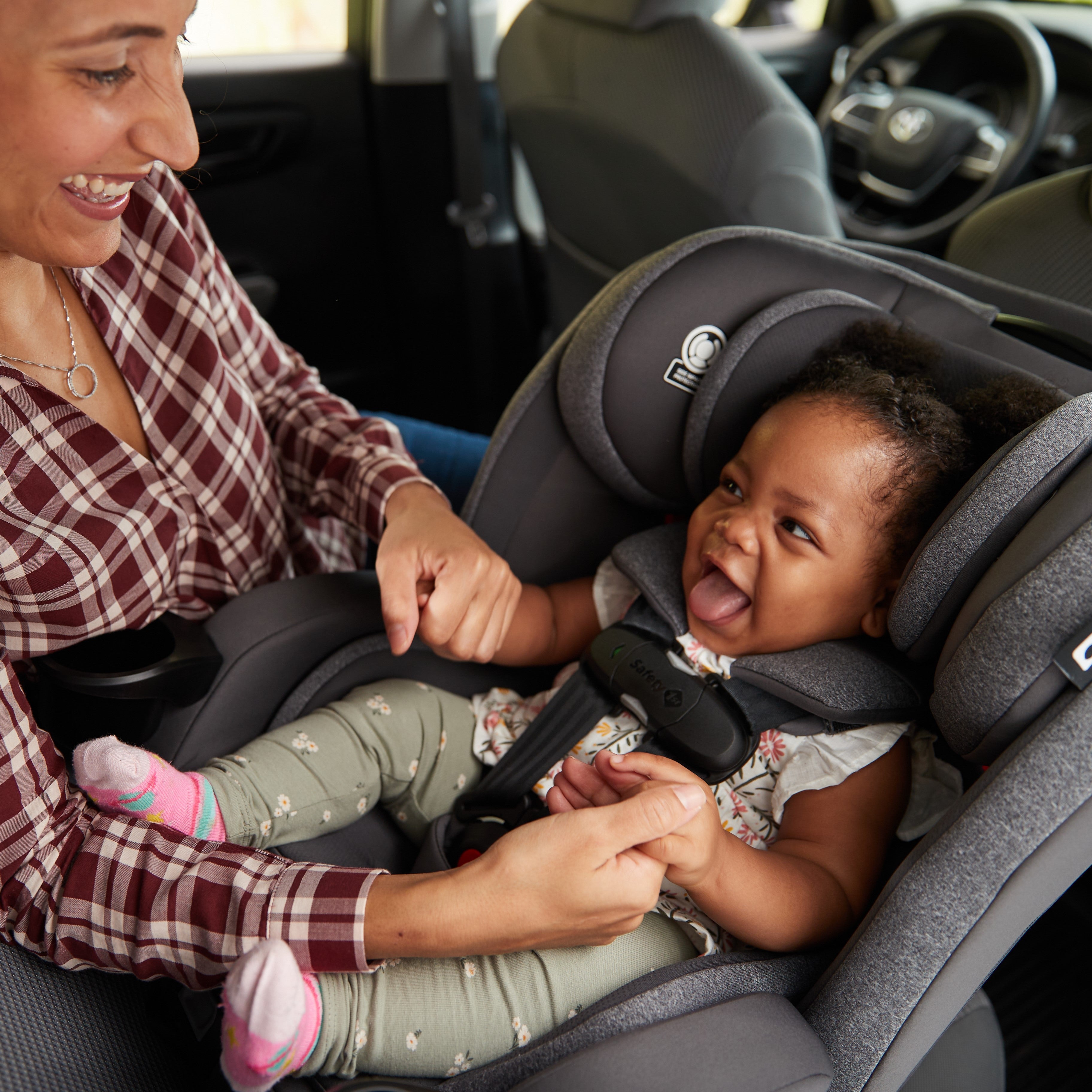 The Safety 1st SlimRide 4-in-1 Convertible Car Seat is built to grow with your child while keeping them safe and comfortable on the road. With 4 modes of use (rear-facing (5–40 lbs. and 19”–40”), forward-facing (30–65 lbs. and 34.4”–49”), belt-positioning booster and backless booster (40–100 lbs. and 43”–52”), the Safety 1st SlimRide is ready to take your baby home from the hospital or take your big kid to soccer practice. The seat’s slim design allows for fitting 3 across the back seat in most vehicles without sacrificing safety or comfort. With a 5-position adjustable base; a 1-hand, 10-position adjustable headrest; an easy-to-convert backless booster; and machine-washable and -dryable fabric, it’s the only car seat your child will need, from birth through age 10.