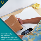 Introducing the Smart Family Scale from Safety 1st—one scale for the whole family, from babies to grown-ups. The Smart Family Scale features a digital backlit LED display that shows precise weight and automatically turns on when stepped on or when baby is placed on the tray. The removable baby tray (for little ones up to 44 lbs.) features a comfortable cork inlay with a built-in measuring chart (up to 24") for keeping up with baby’s growth.