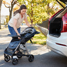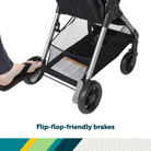 The agile wheels provide maximum maneuverability around corners, while the flip-flop-friendly brakes make it simple to put the stroller into park. There’s plenty of storage, too. The parent and child trays are perfect for smaller items, while the extra-large storage basket works well for larger items. The car seat keeps your baby safe with SIP and LATCH compatibility for quick and easy installation in the car.