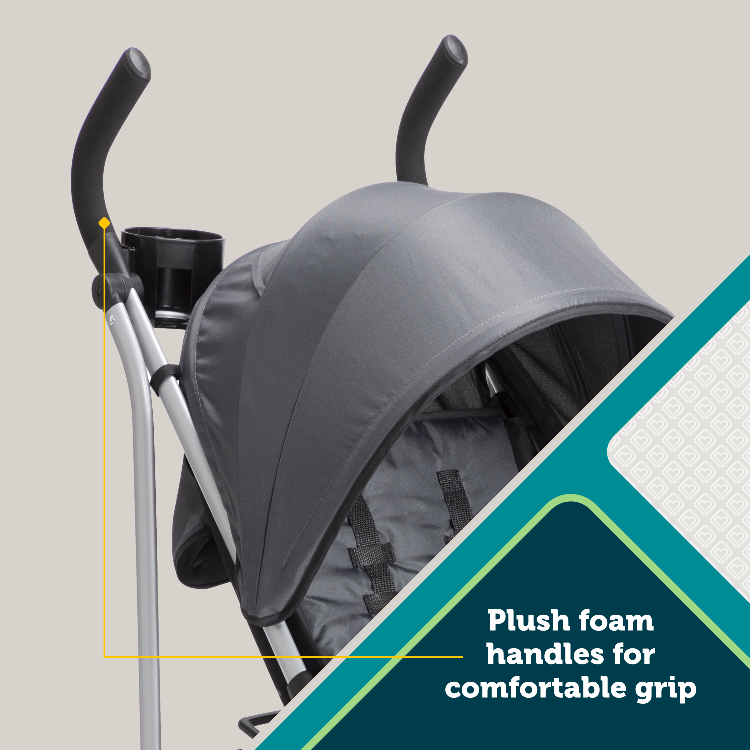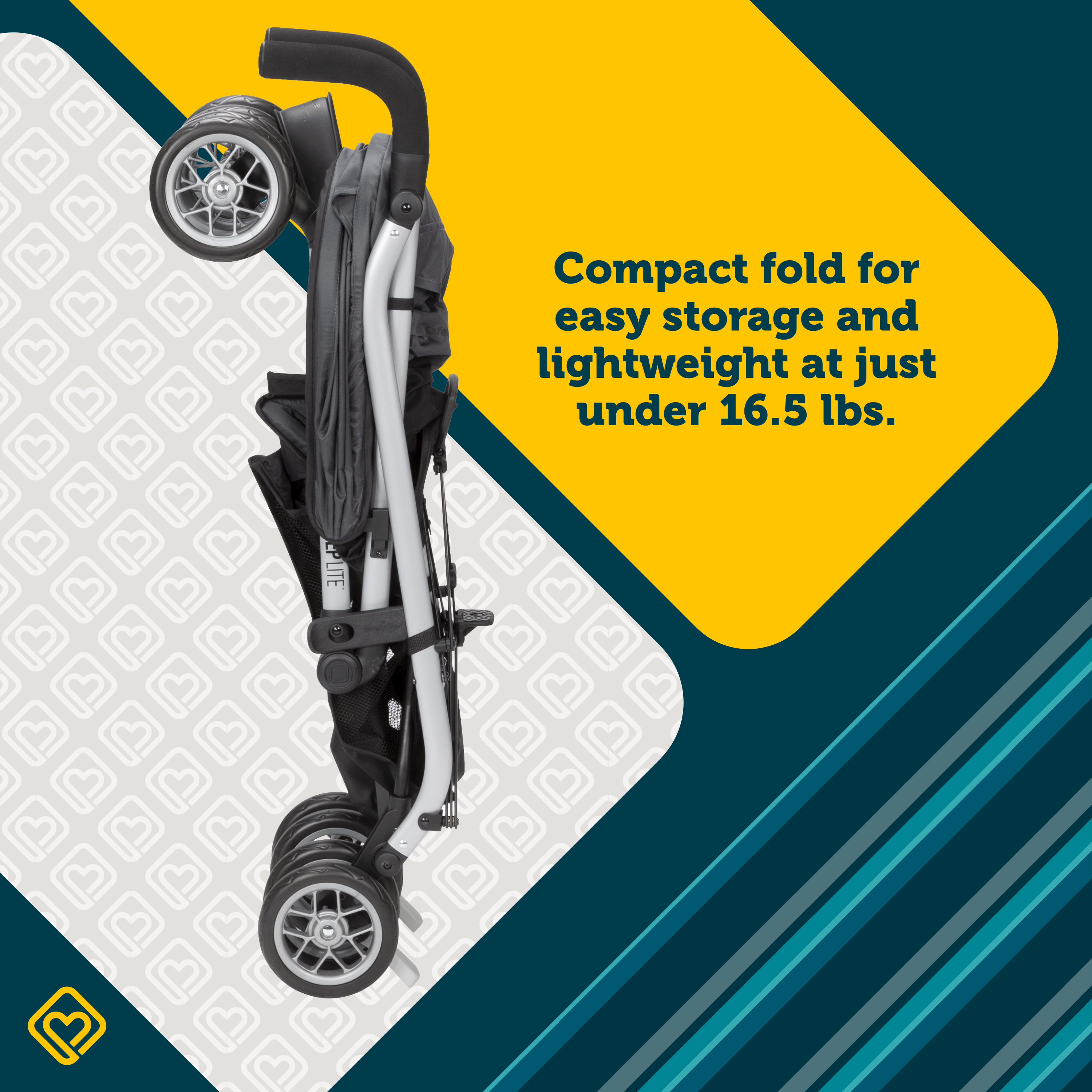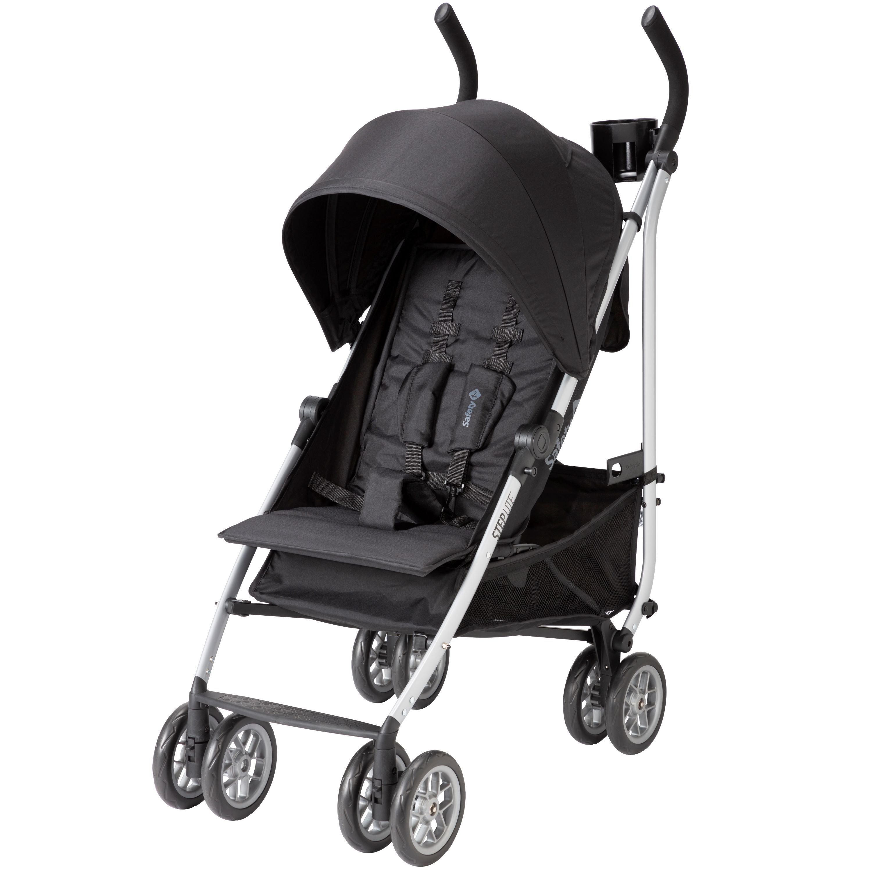 The Safety 1st Step Lite Compact Stroller lightens up every stroll with its compact size and ample storage space. With its plush foam handles and lightweight aluminum frame (at under 16.5 lbs.), you can zip around the grocery store, the park, or wherever you need to be. You can easily store the stroller in your trunk or tuck it away in the closet. It also conveniently folds up even if the canopy is extended.
