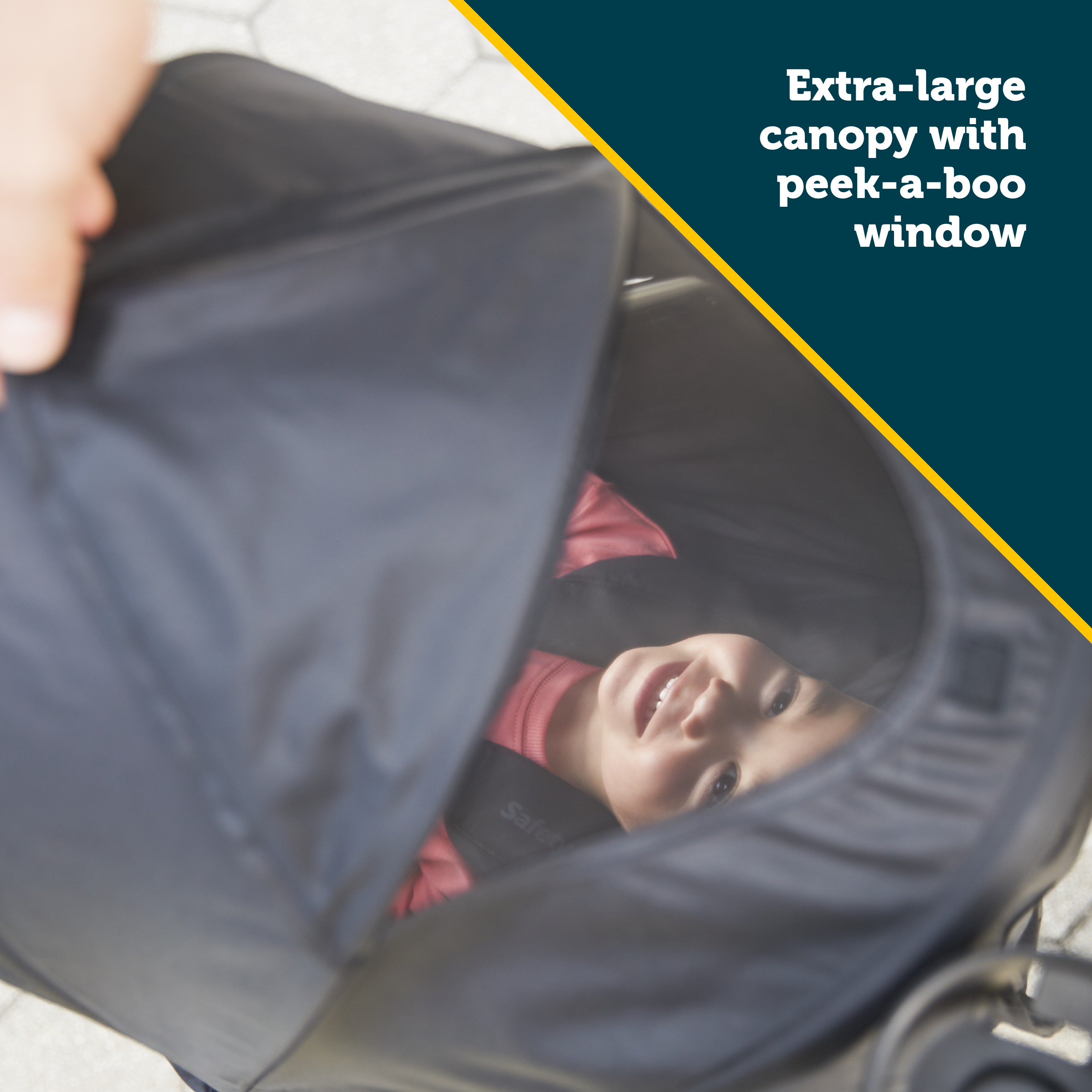 With the extra-large canopy, your child will sit comfortably in the shade even on sunny days. The peek-a-boo window lets you quickly look in and exchange a smile or two. There’s plenty of room in the storage basket for diapers, extra clothes, and everything you need along the way. You can also store small personal items in the covered pocket attached to the back of the seat.