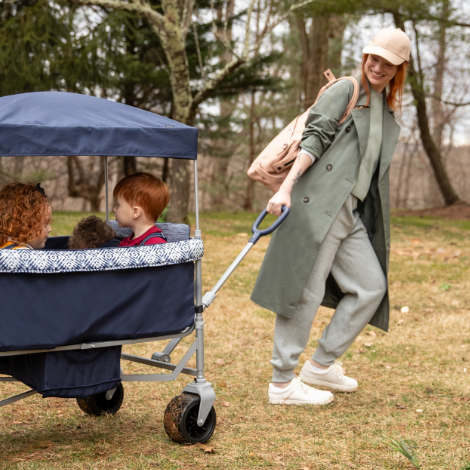 The Summit Quad Wagon Stroller is designed for more kids, more cargo, and more fun for the whole crew. Parents will love the versatile seating design: all 4 seats fold down individually to make room for gear or fold up to seat up to 4 kids at once. And the all-terrain tires make it easy to stroll through parks, trails, or sandy beaches.