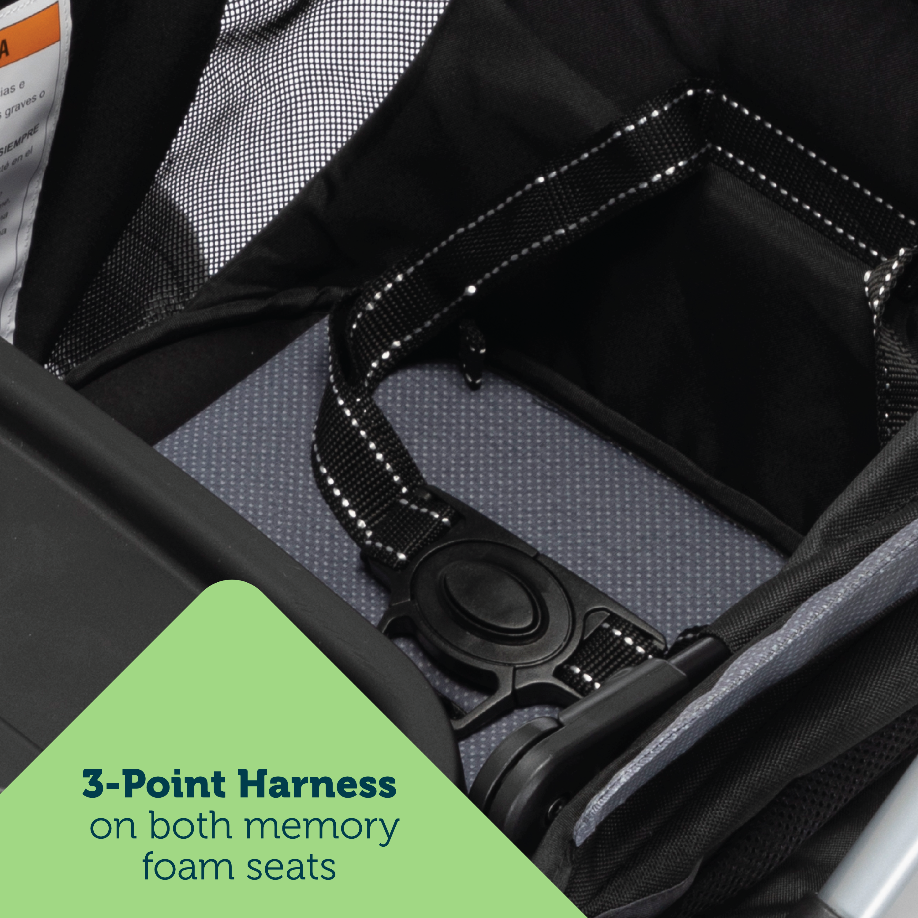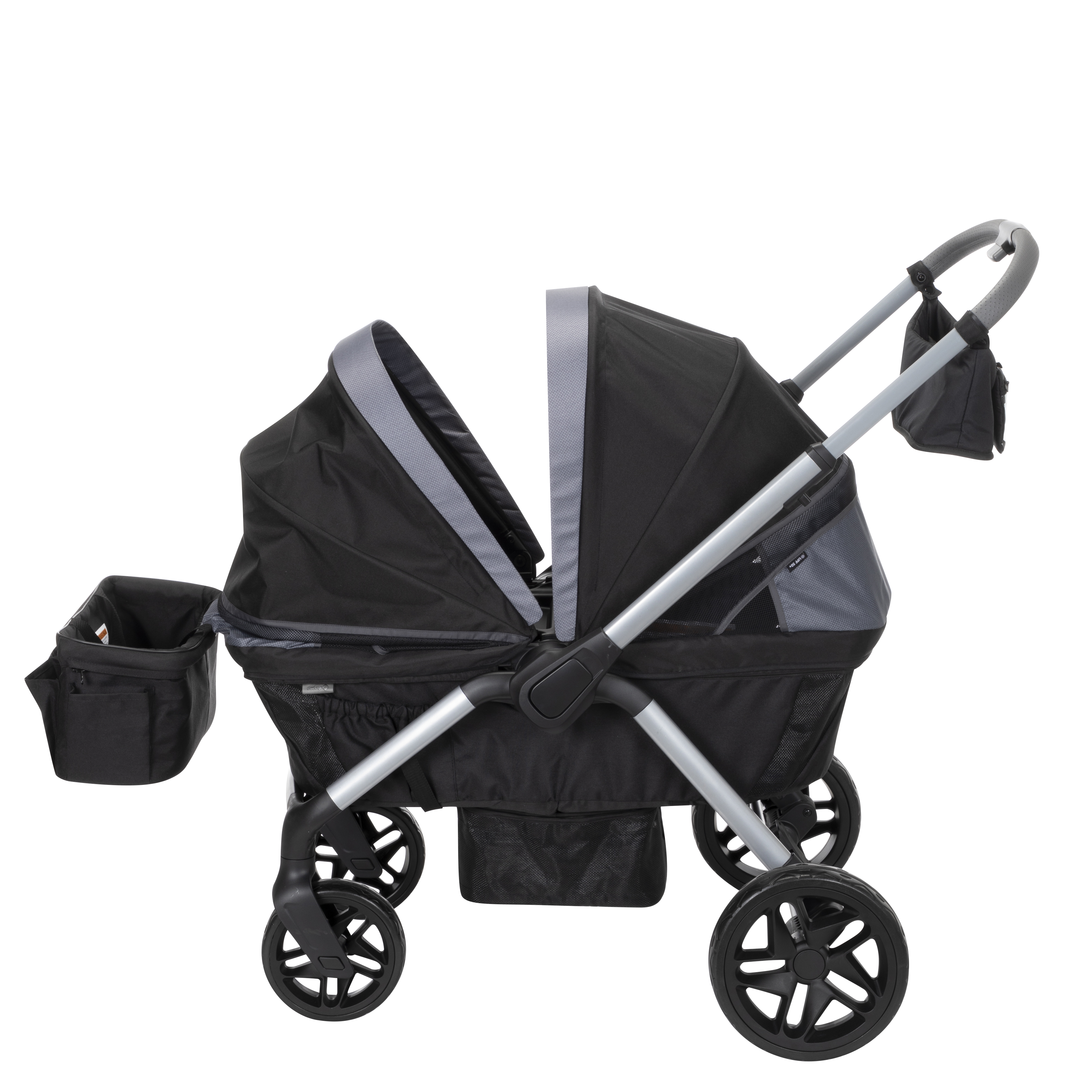 Feel free to roam off the beaten path with the Summit™ Wagon Stroller from Safety 1st™, equipped with 2 extra-comfortable memory-foam seats and dual vented canopies with 50+ UPF sun protection. Parents will love the ease and maneuverability of this go-everywhere wagon, which features a 3-position telescoping handle that reverses for pushing or pulling, all-terrain wheels with rear suspension, and plenty of storage. Don’t want to take the baby out of their car seat? No problem. Just click your infant seat (not included) into the Summit Wagon Stroller with the included adapters. In between adventures, the Summit Wagon Stroller easily folds up for compact, self-standing storage. It also includes adapters compatible with most Safety 1st™and Cosco Kids™ infant car seats (not included).